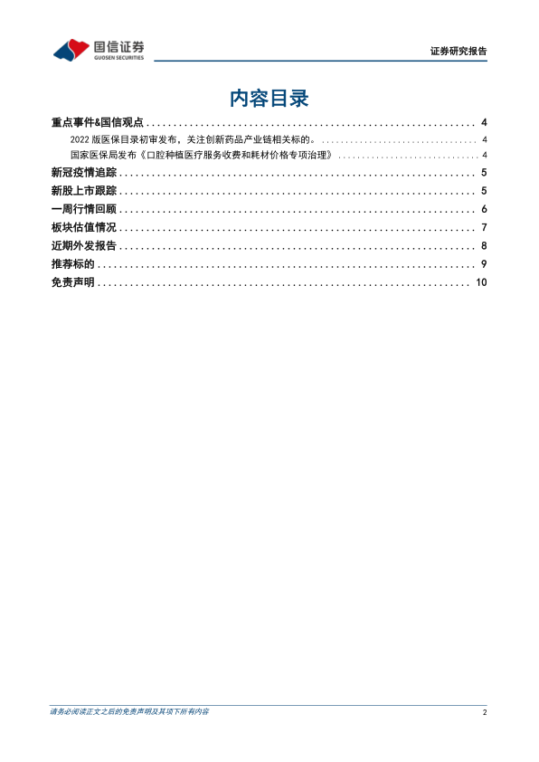 风险提示:产品研发进度不及预期;医保控费、药品及高值耗材集采降价超过预期;疫情反复的风险。