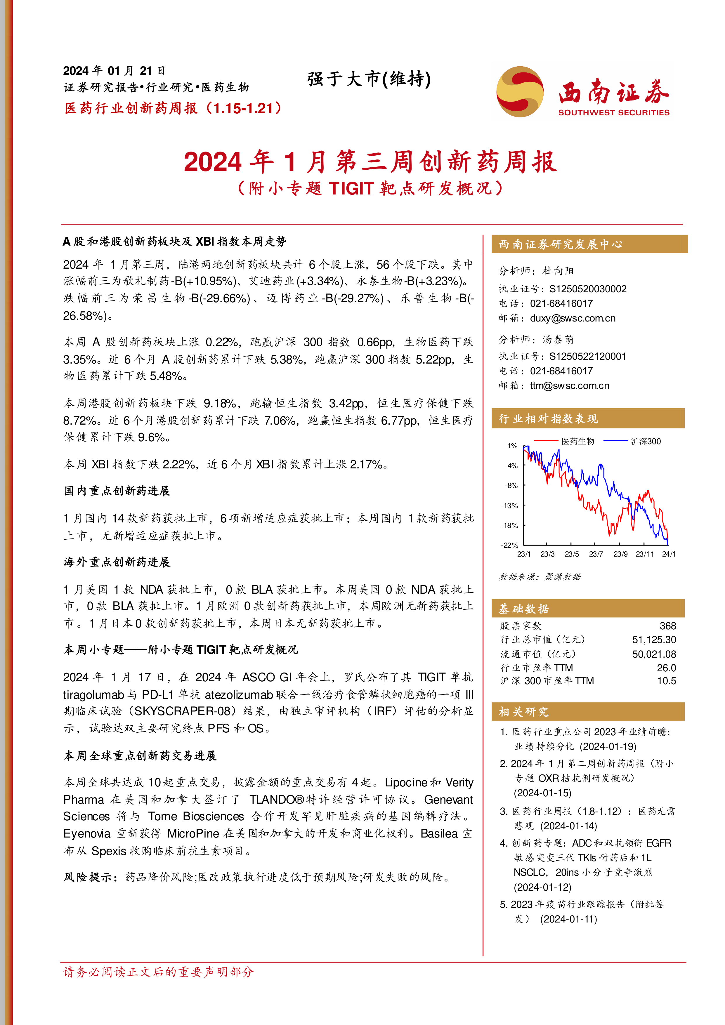 2024年1月第三周创新药周报(附小专题TIGIT靶点研发概况)