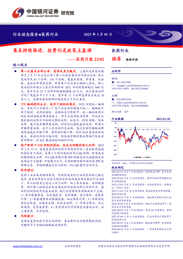 医药月报23/02:集采持续推进,控费仍是政策主基调