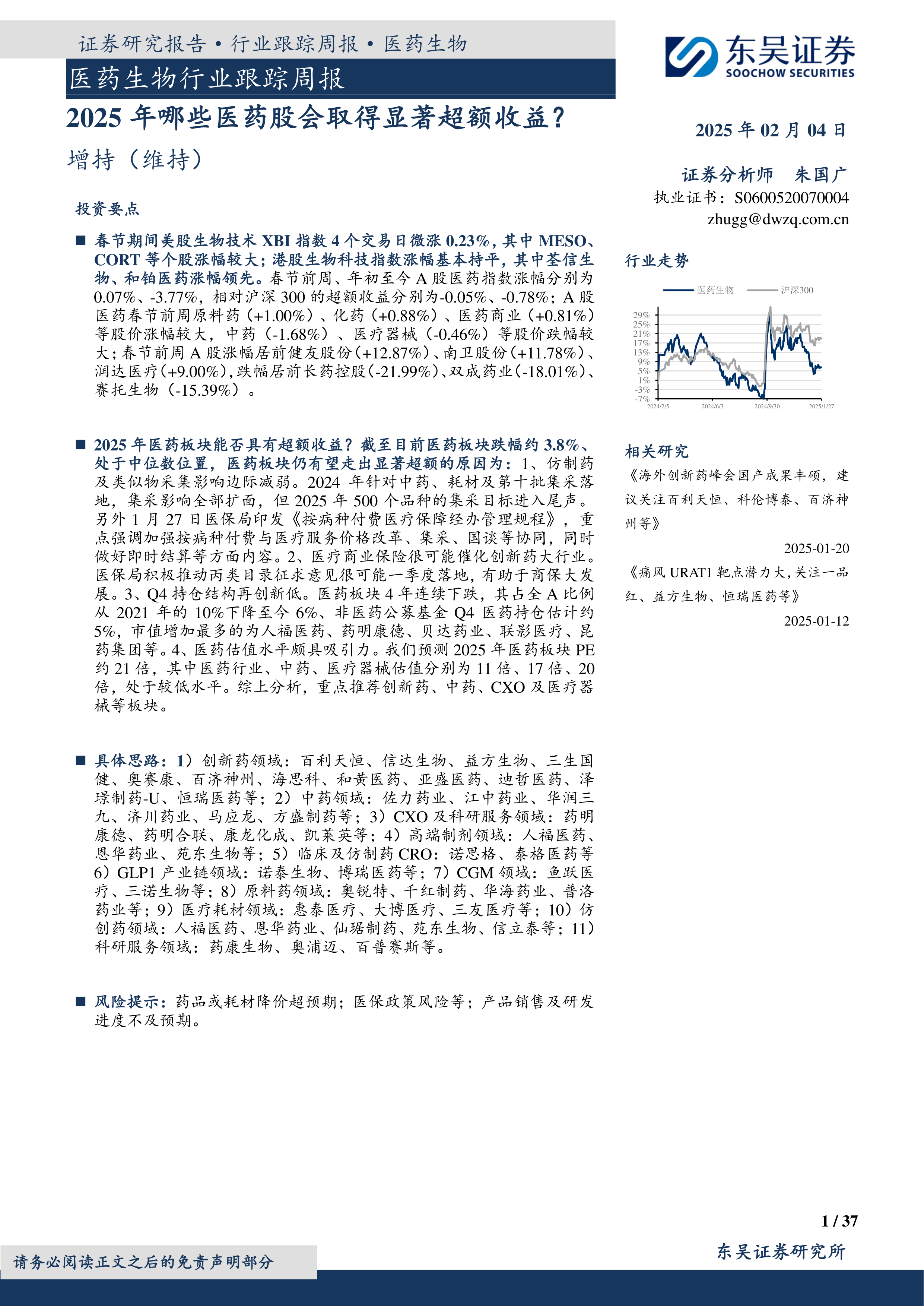 医药生物行业跟踪周报:2025年哪些医药股会取得显著超额收益?