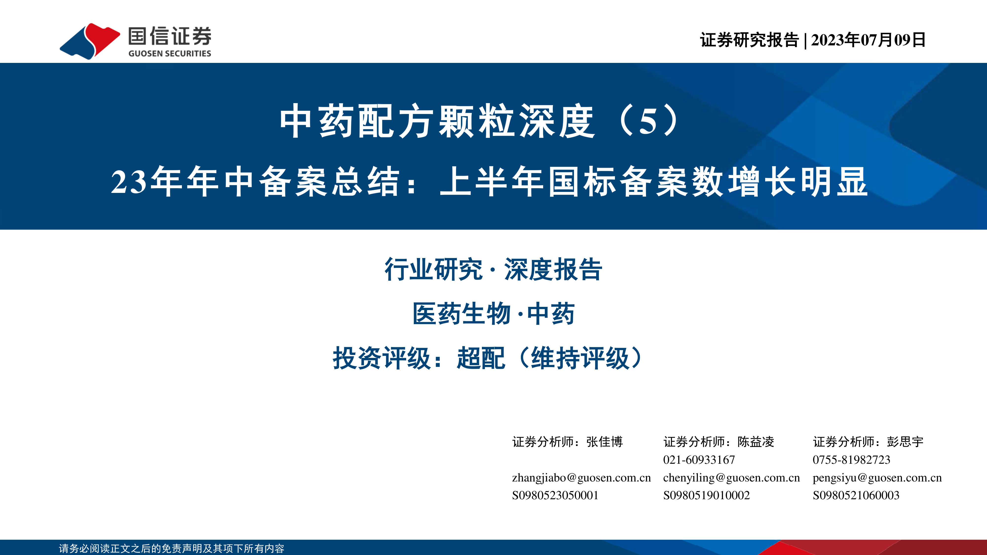中药配方颗粒深度(5):23年年中备案总结:上半年国标备案数增长明显