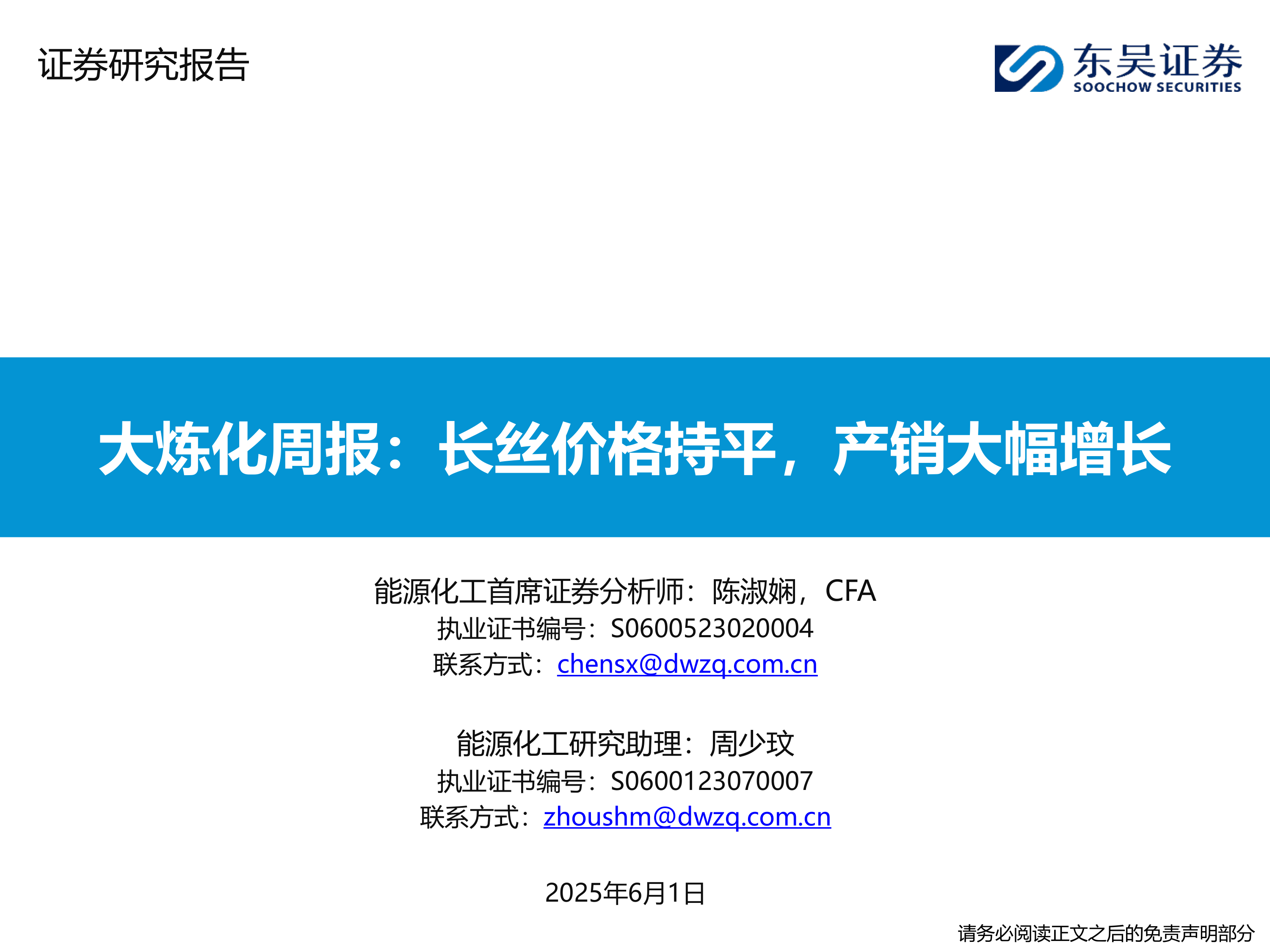 大炼化周报:长丝价格持平,产销大幅增长