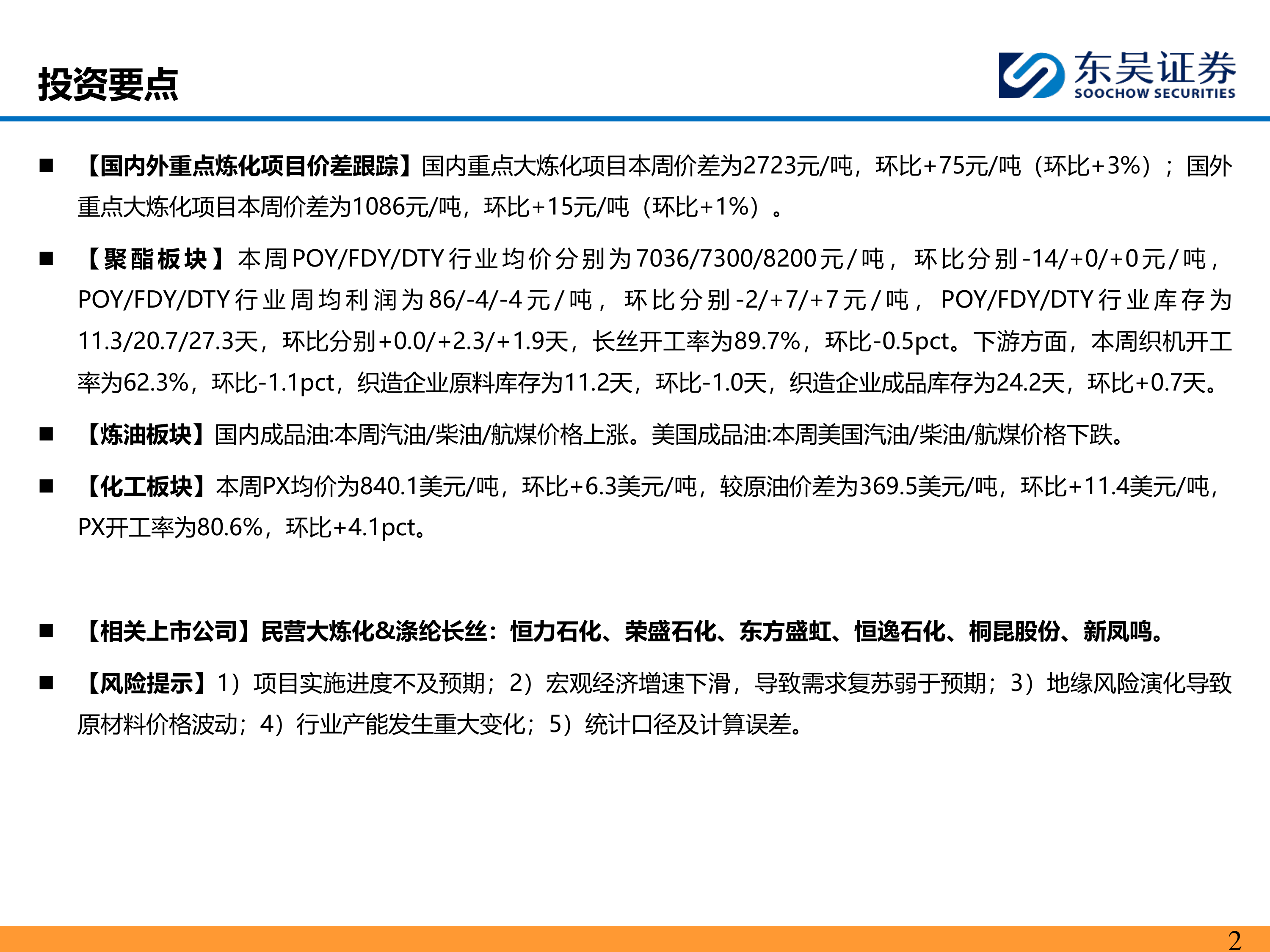 【相关上市公司】民营大炼化&涤纶长丝:恒力石化、荣盛石化、东方盛虹、恒逸石化、桐昆股份、新凤鸣。
