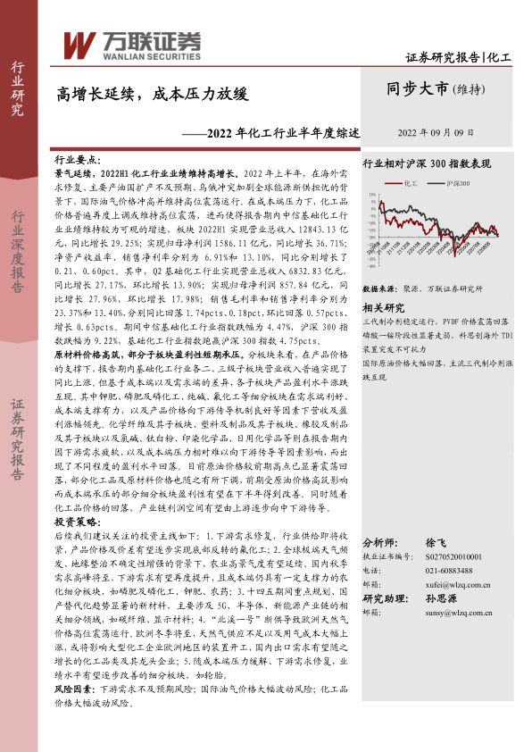 2022年化工行业半年度综述:高增长延续,成本压力放缓