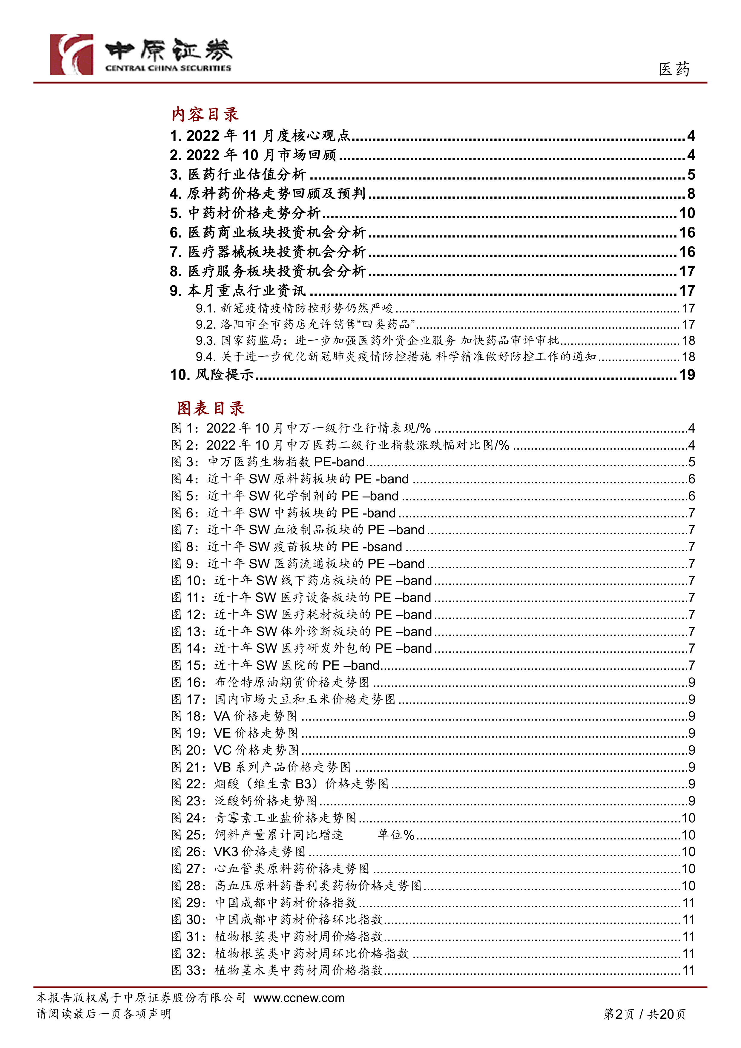 本报告对2022年11月医药行业的核心观点、10月市场表现、行业估值、细分板块价格走势及投资机会进行了专业而深入的分析。报告指出,在新冠疫情防控措施优化调整的背景下,中药板块因其在疫情防治中的重要作用和政策支持,以及CXO板块的估值修复潜力,成为当前医药投资的两大主线。