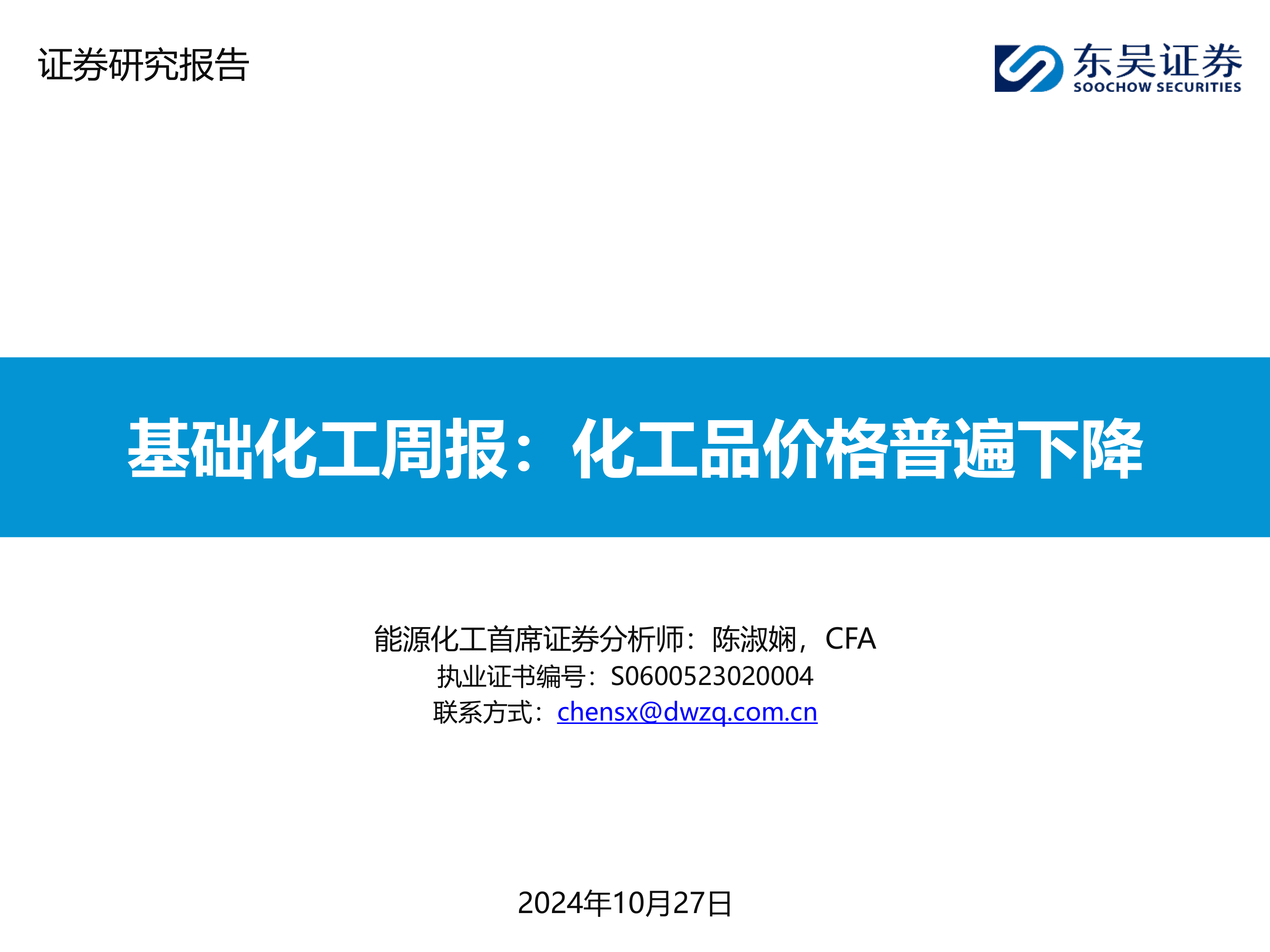 基础化工周报:化工品价格普遍下降
