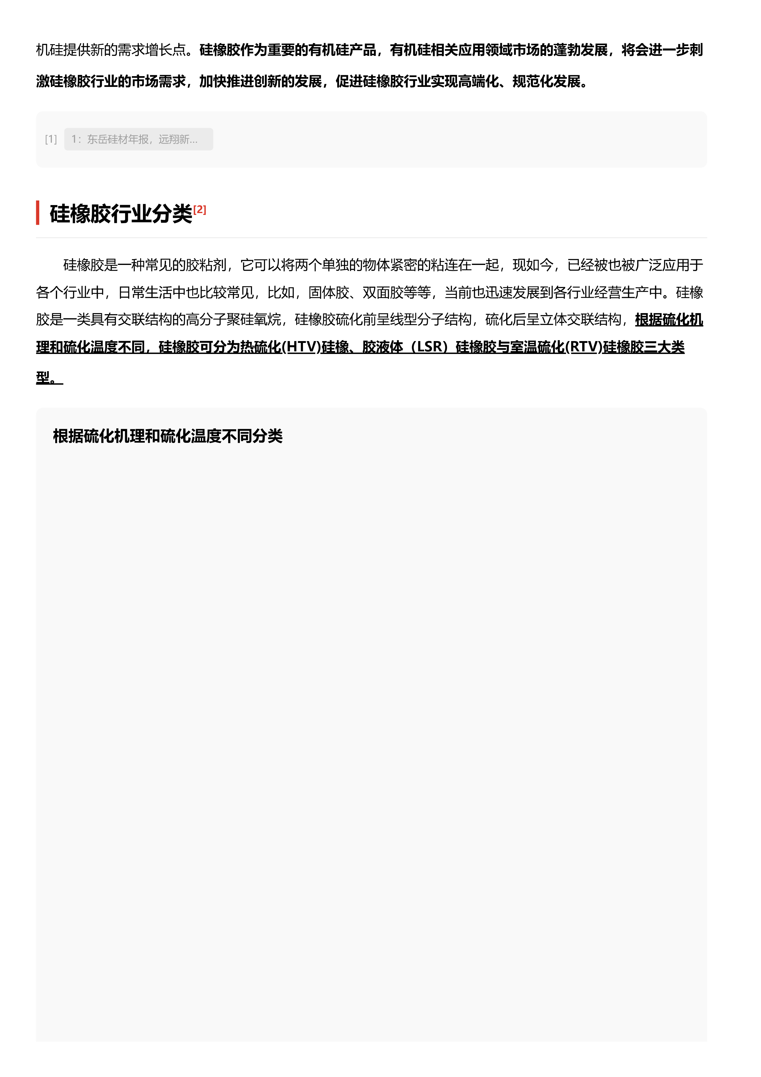 硅橡胶作为有机硅材料中非常重要的成员,品种众多、应用广泛。硅橡胶是主链由硅氧键组成、侧基由有机基团构成的一类半无机半有机化合物,具有耐高低温、耐气候老化、耐水、电绝缘、生物相容等优异性能,已广泛应用于航空航天、交通、化工、医疗卫生、建筑和电子电器等工业领域。当前除传统行业对有机硅材料的需求将持续增长外,光伏、新能源等节能环保产业,超高压和特高压电网建设、智能穿戴材料、3D打印及5G等新兴产业的发展均为有机硅提供新的需求增长点。硅橡胶作为重要的有机硅产品,有机硅相关应用领域市场的蓬勃发展,将会进一步刺激硅橡胶行业的市场需求,加快推进创新的发展,促进硅橡胶行业实现高端化、规范化发展