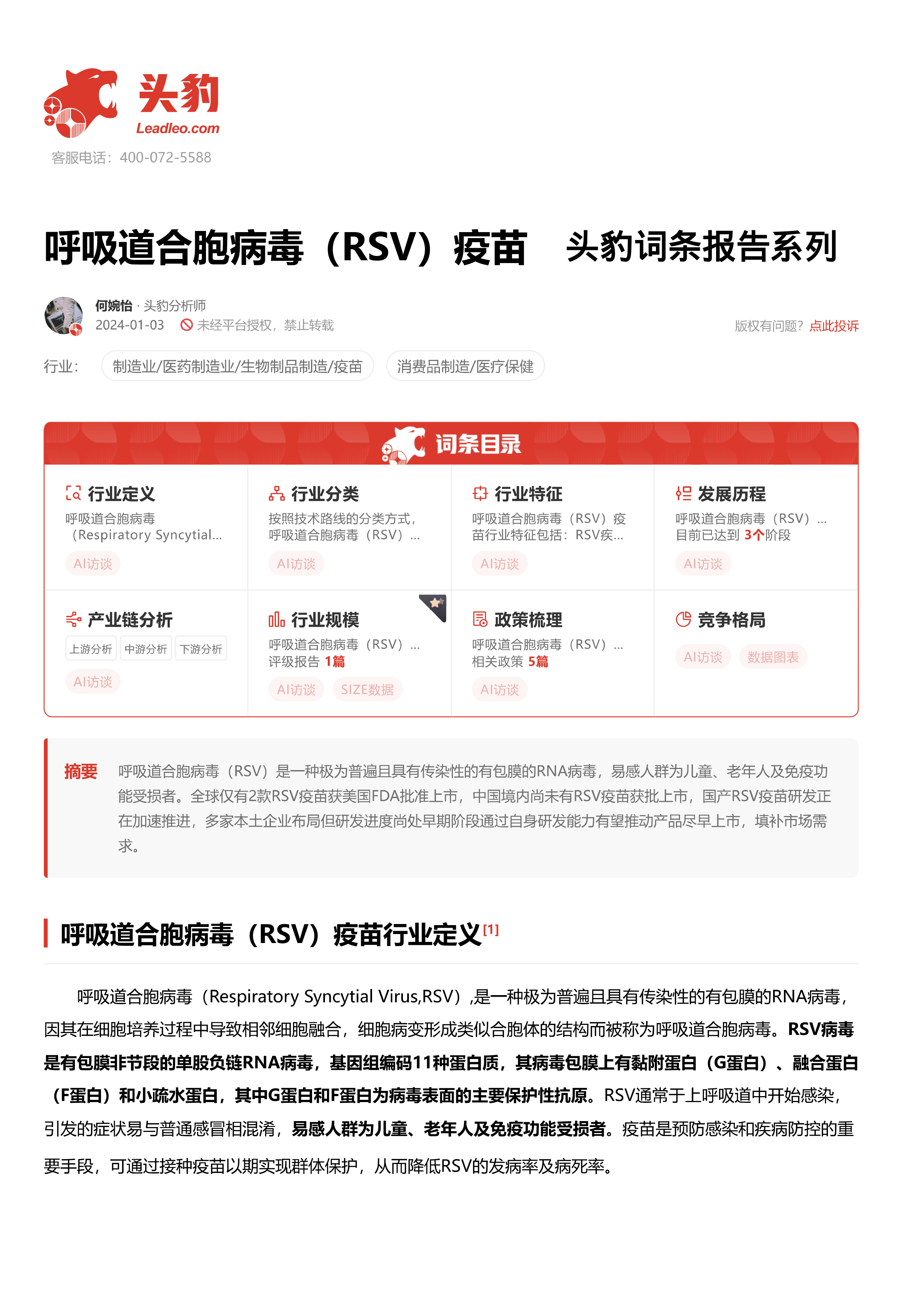 呼吸道合胞病毒(RSV)疫苗 头豹词条报告系列