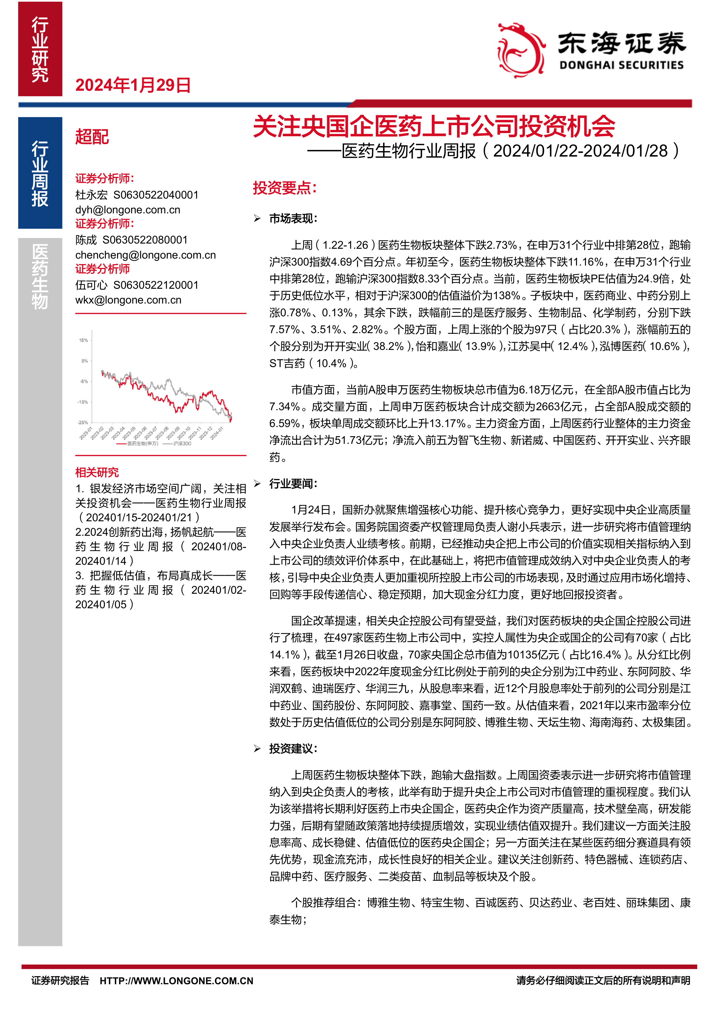 医药生物行业周报:关注央国企医药上市公司投资机会