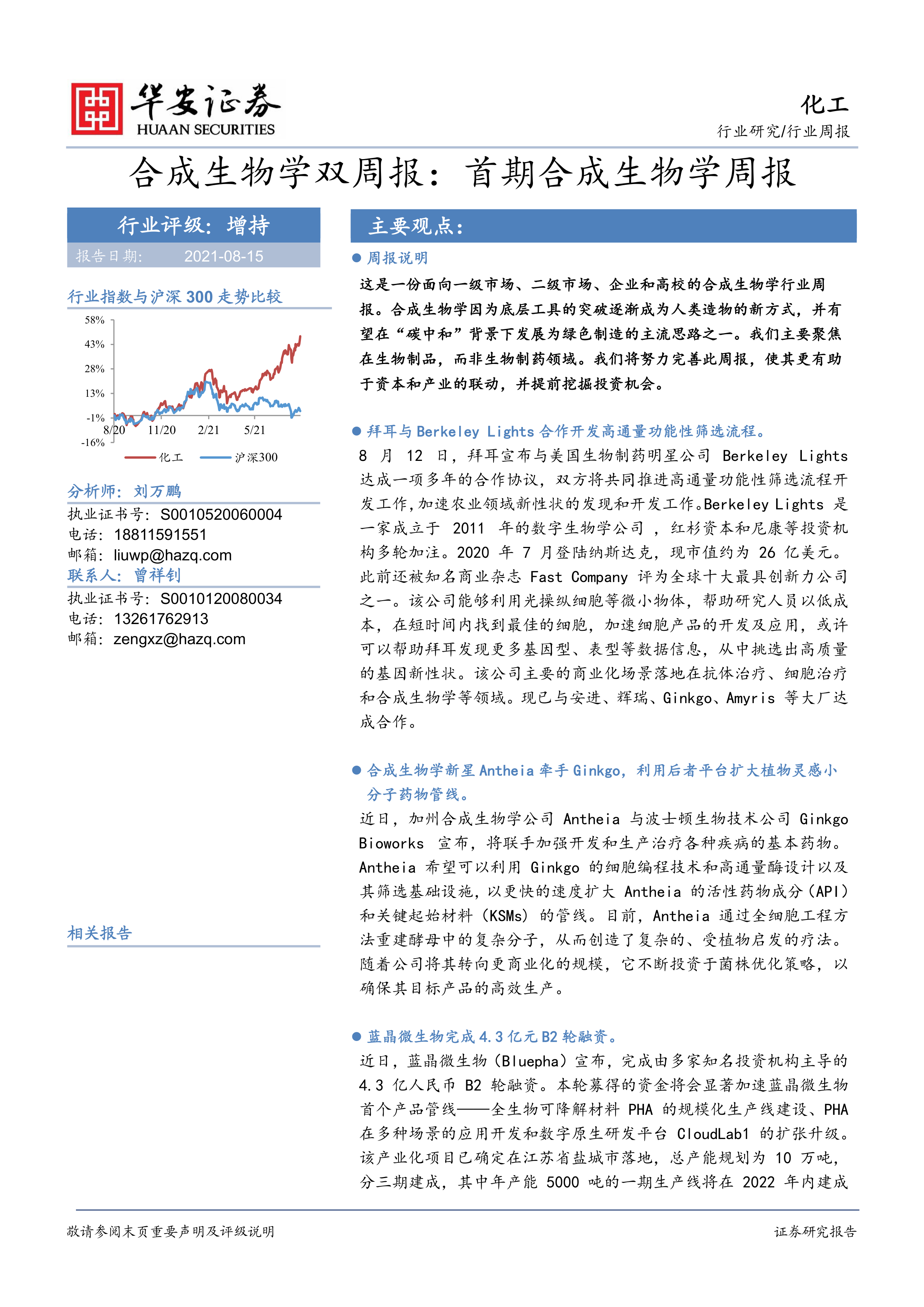 这是一份面向一级市场、二级市场、企业和高校的合成生物学行业周报。合成生物学因为底层工具的突破逐渐成为人类造物的新方式,并有望在“碳中和”背景下发展为绿色制造的主流思路之一。我们主要聚焦在生物制品,而非生物制药领域。我们将努力完善此周报,使其更有助于资本和产业的联动,并提前挖掘投资机会。