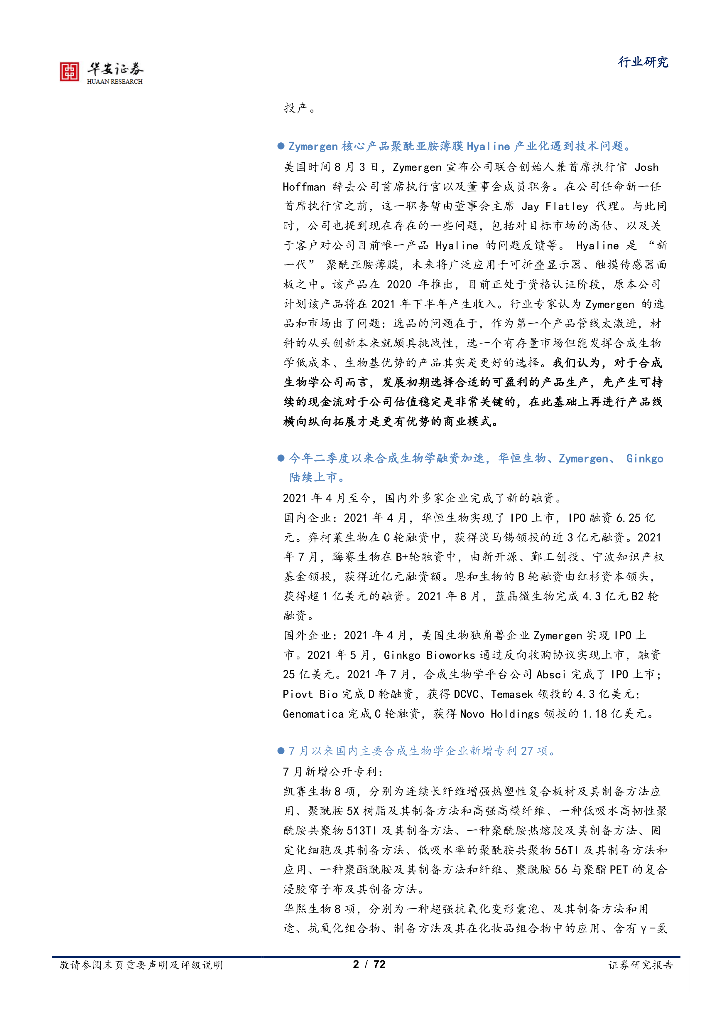 今年二季度以来合成生物学融资加速,华恒生物、Zymergen、Ginkgo陆续上市。