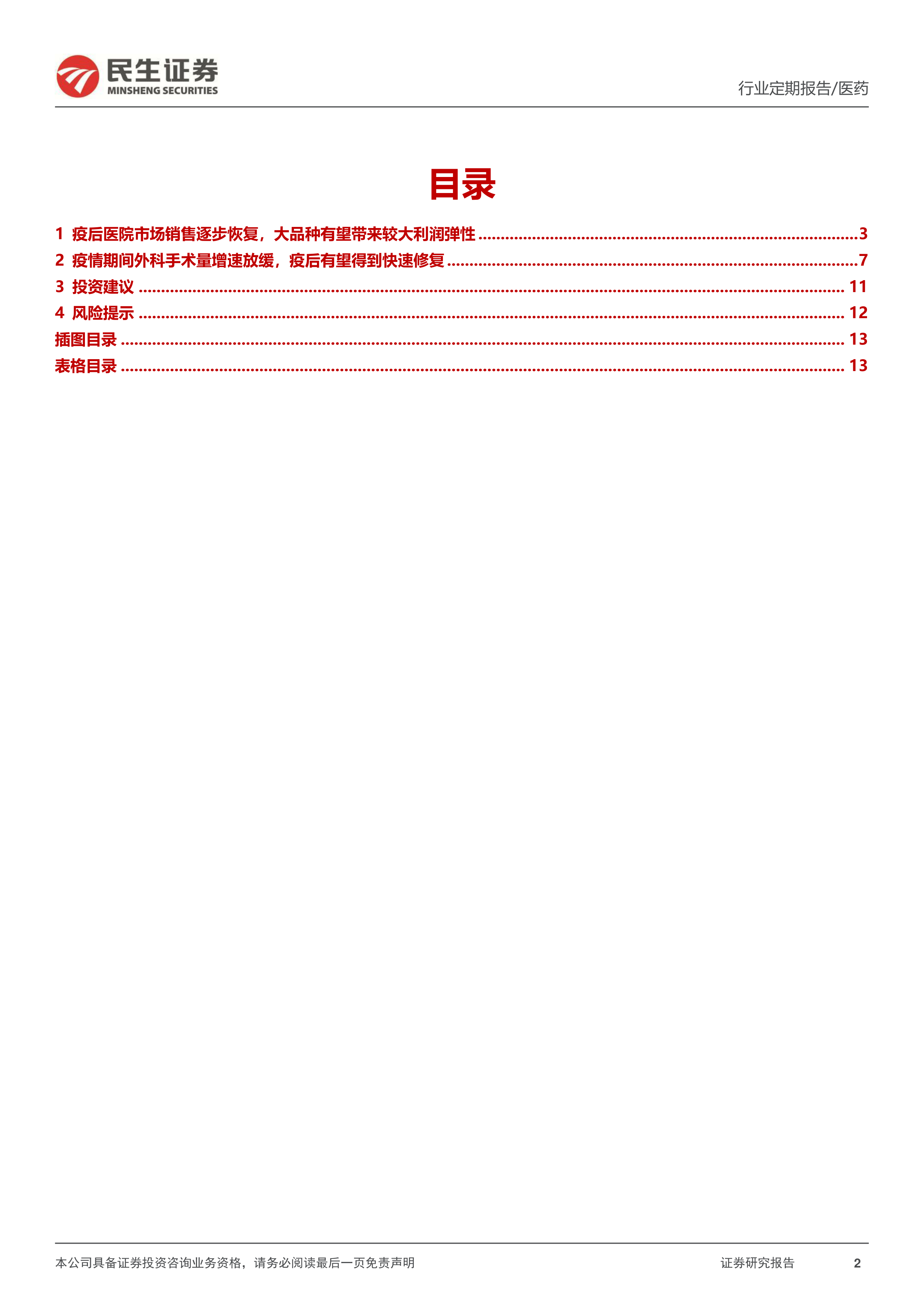 风险提示:医院门诊恢复不及预期,手术量恢复不及预期,其他风险。