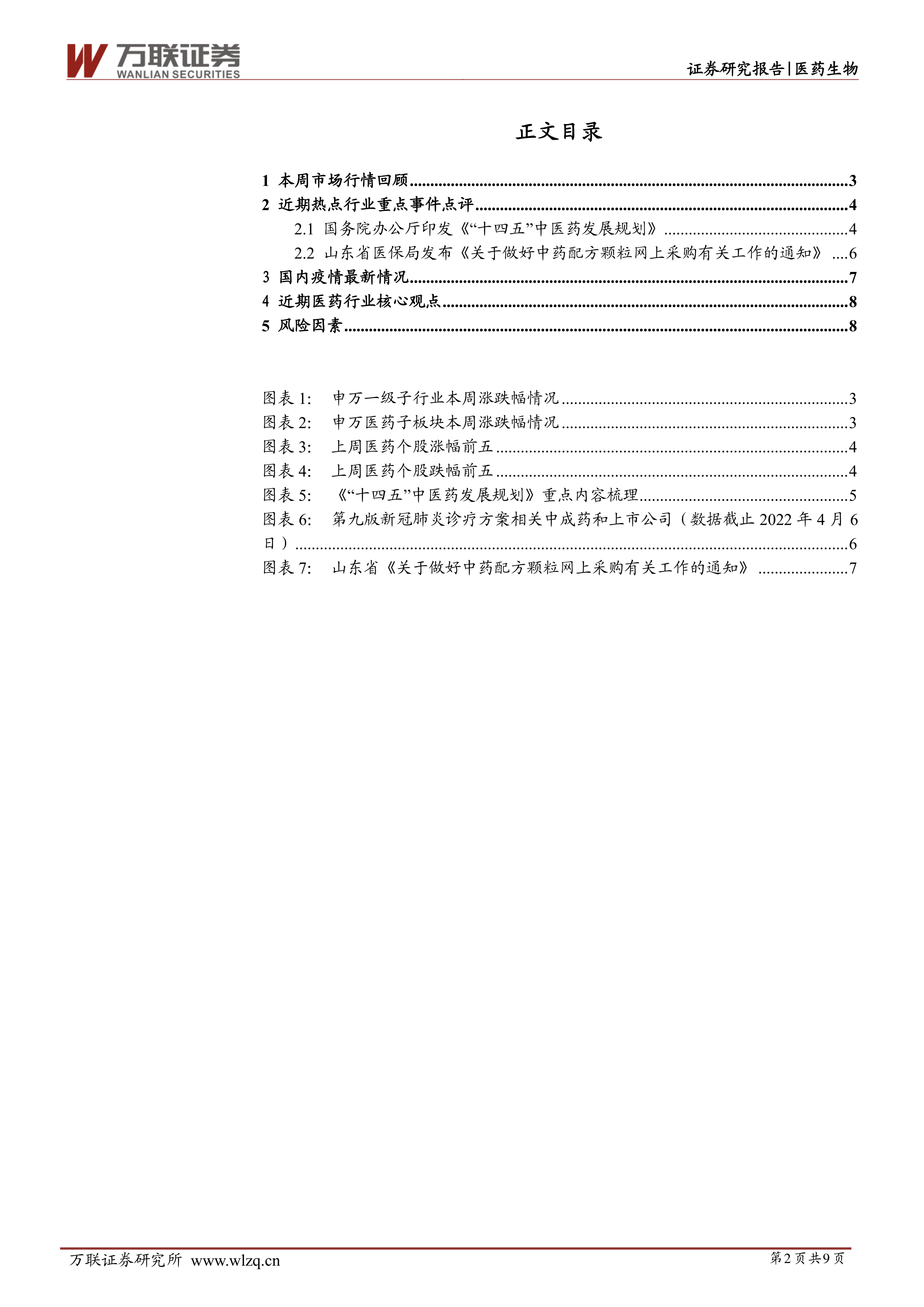 近期中医药行业利好政策不断,上周,国务院印发《“十四五”中医药发展规划》,更是对中医药行业长期发展制定了全方位的战略规划。同时,挂网采购陆续在各省份展开,有利于行业规范。我们认为在顶层设计支持下,中医药行业具备长期投资价值,建议关注相关赛道。1)中药OTC:政策免疫性强,控费降价风险小,企业布局院外市场动力足,行业未来扩容可期;2)中药创新:结合现代的先进研究手段进行创新,在优势领域布局研发管线是中药企业核心竞争力之一,政策加大对中医药科技创新支持力度,企业有望在传承的基础上,加快创新转型;3)中药配方颗粒:需求扩增(终端放开)+医保准入落地,带动产业扩容;4)新冠治疗相关中医药赛道:国家认可中医药在包括新冠肺炎等重大传染病防控工作中的作用,并将部分中药和医疗服务纳入新冠肺炎诊疗方案中,中医药战略地位进一步提高;5)中医医疗:国家支持扩大优质中医医疗资源总量,鼓励社会力量在基层办中医,带动中医医疗产业扩容;6)中医药出海:借“疫”出海,推动中医药企业开拓国际重点市场,中医药海外注册销售迎来契机。