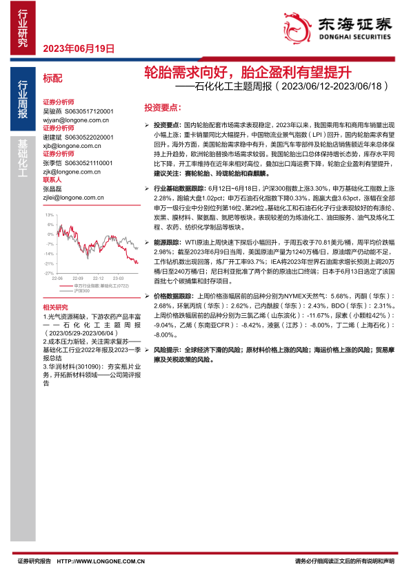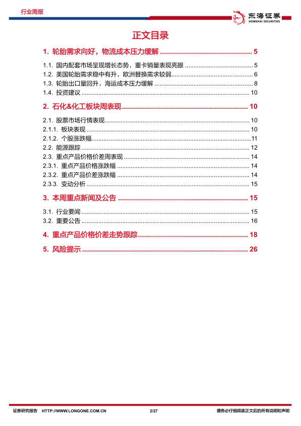 石化化工主题周报:轮胎需求向好,胎企盈利有望提升