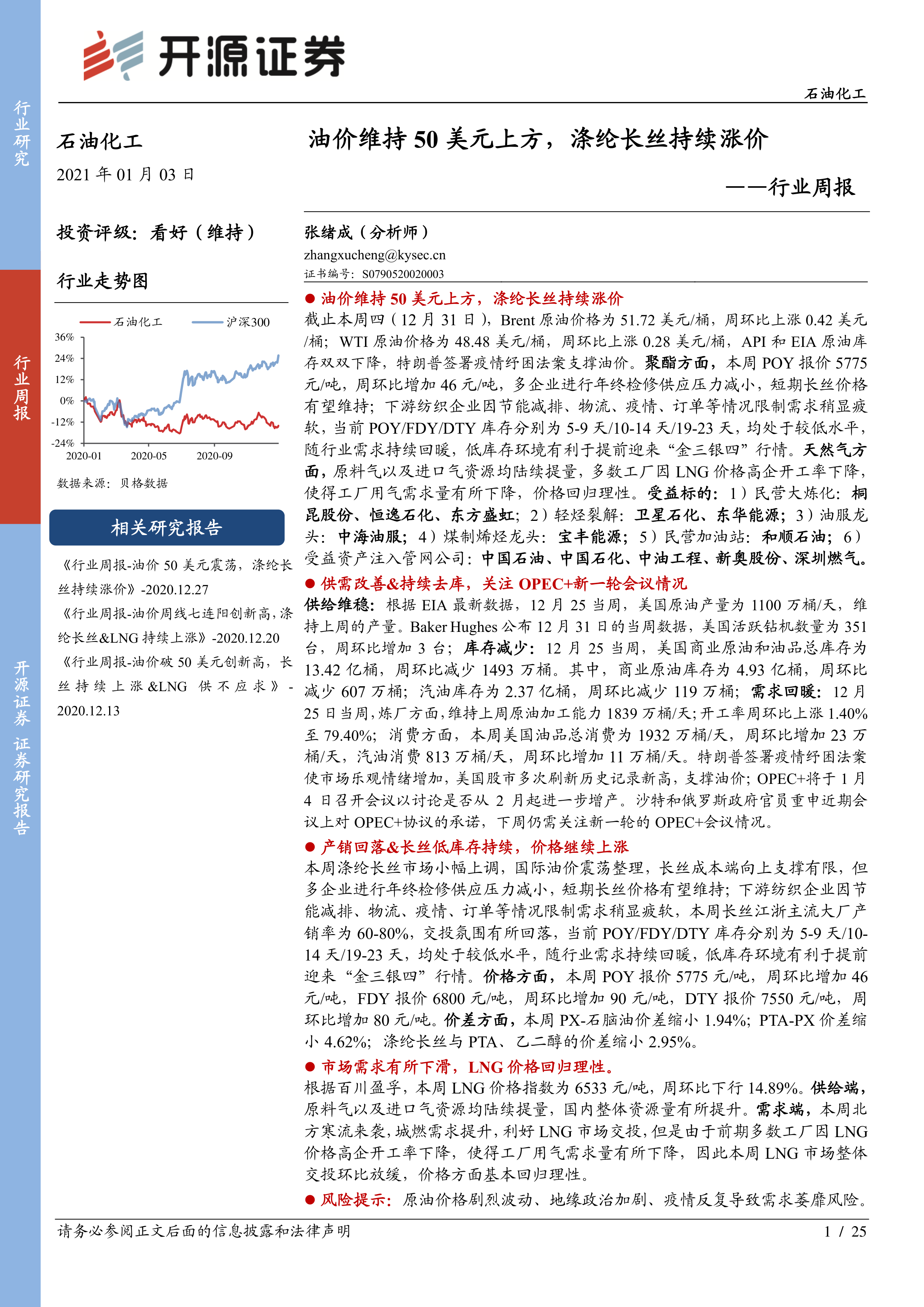 石油化工行业周报:油价维持50美元上方,涤纶长丝持续涨价