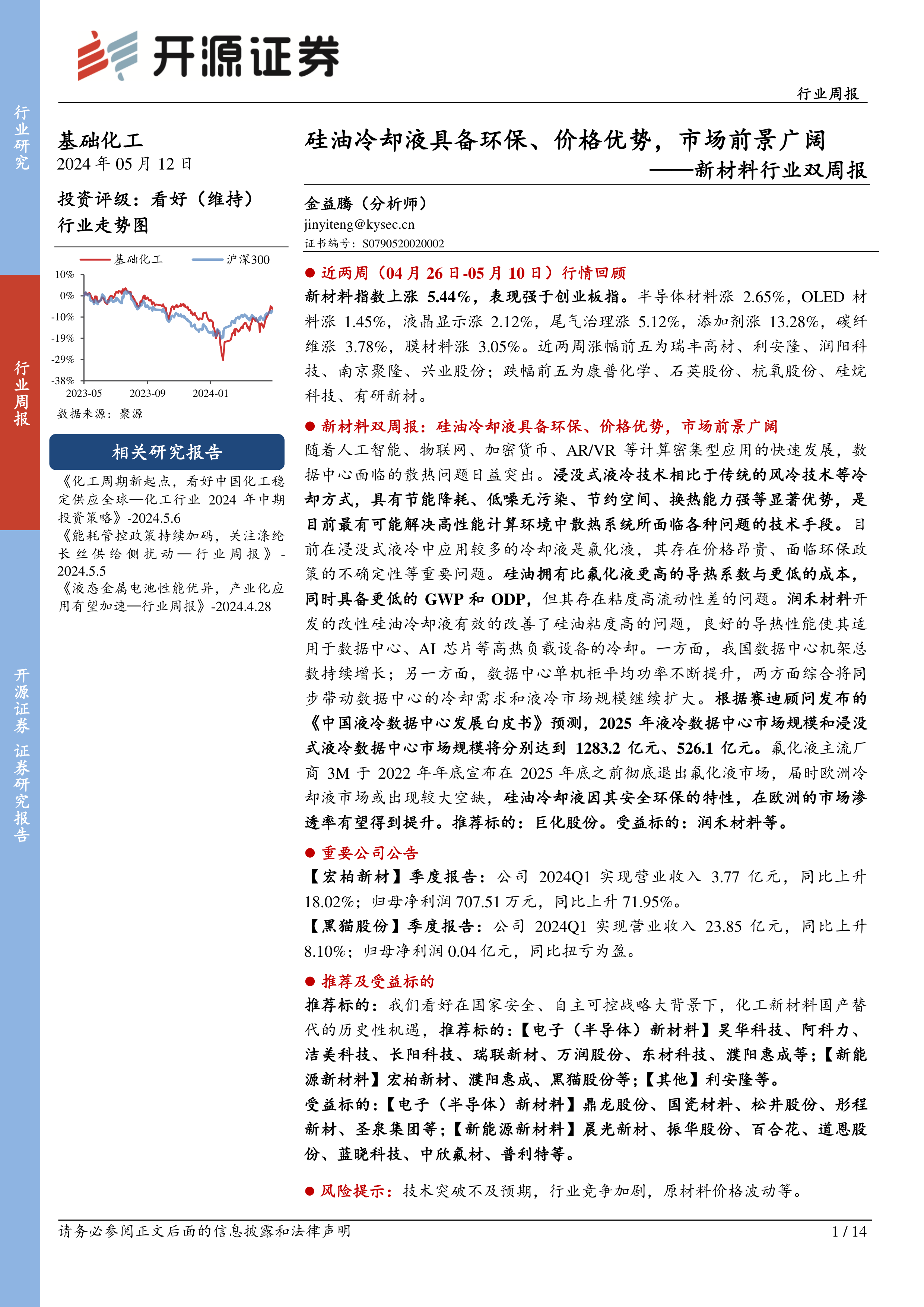 新材料行业双周报:硅油冷却液具备环保、价格优势,市场前景广阔