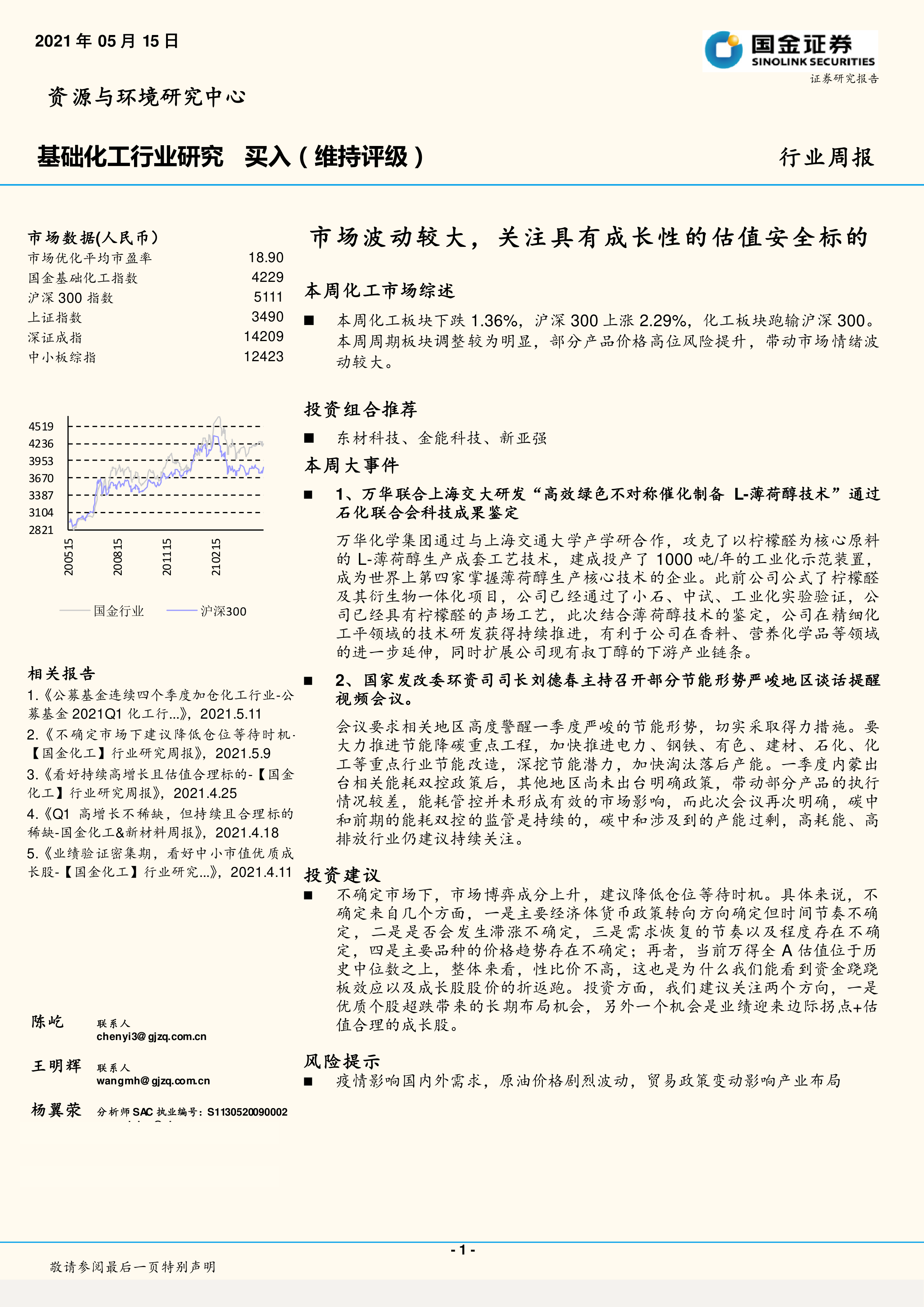 基础化工行业研究:市场波动较大,关注具有成长性的估值安全标的