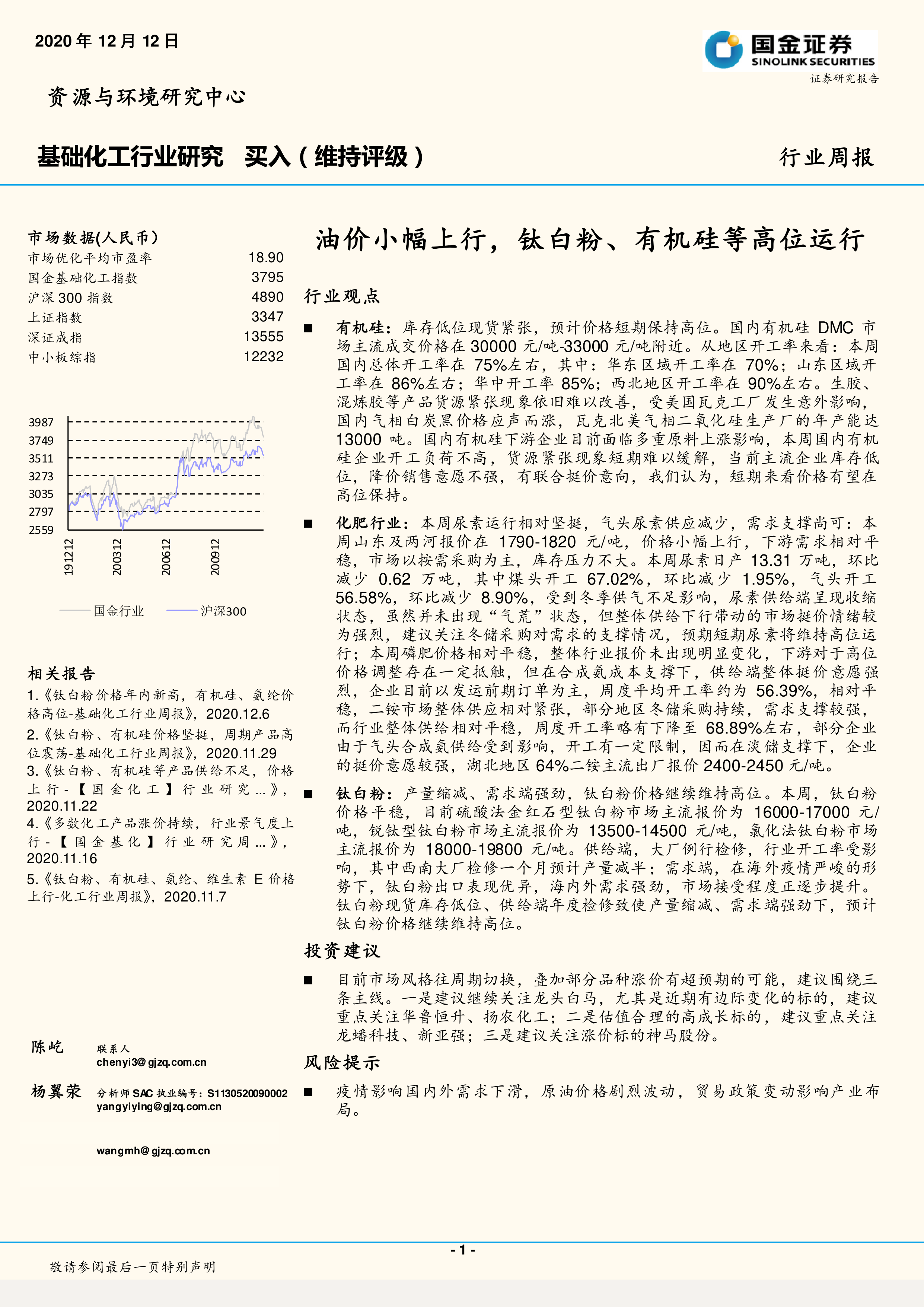 基础化工行业研究:油价小幅上行,钛白粉、有机硅等高位运行