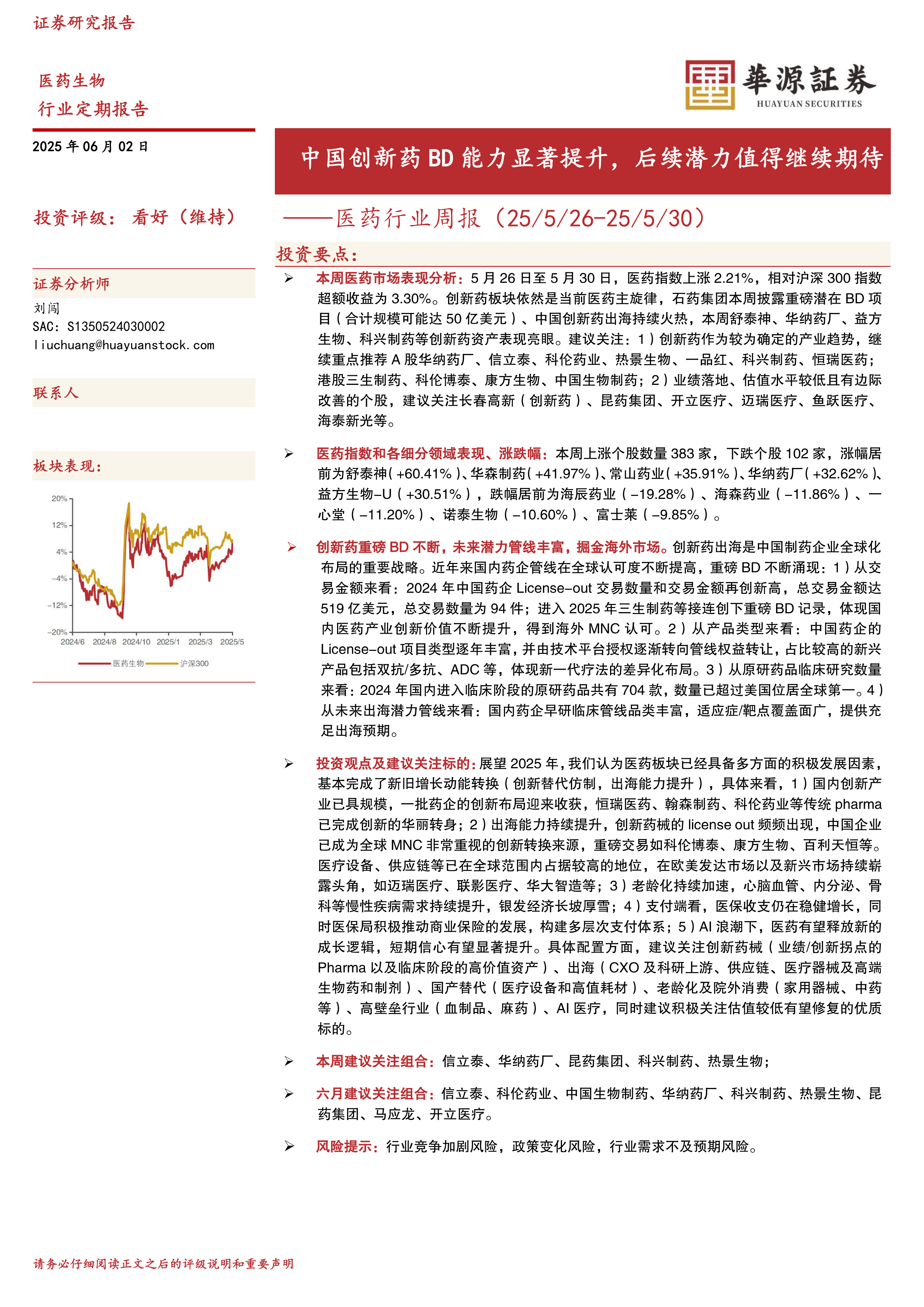 医药行业周报:中国创新药BD能力显著提升,后续潜力值得继续期待