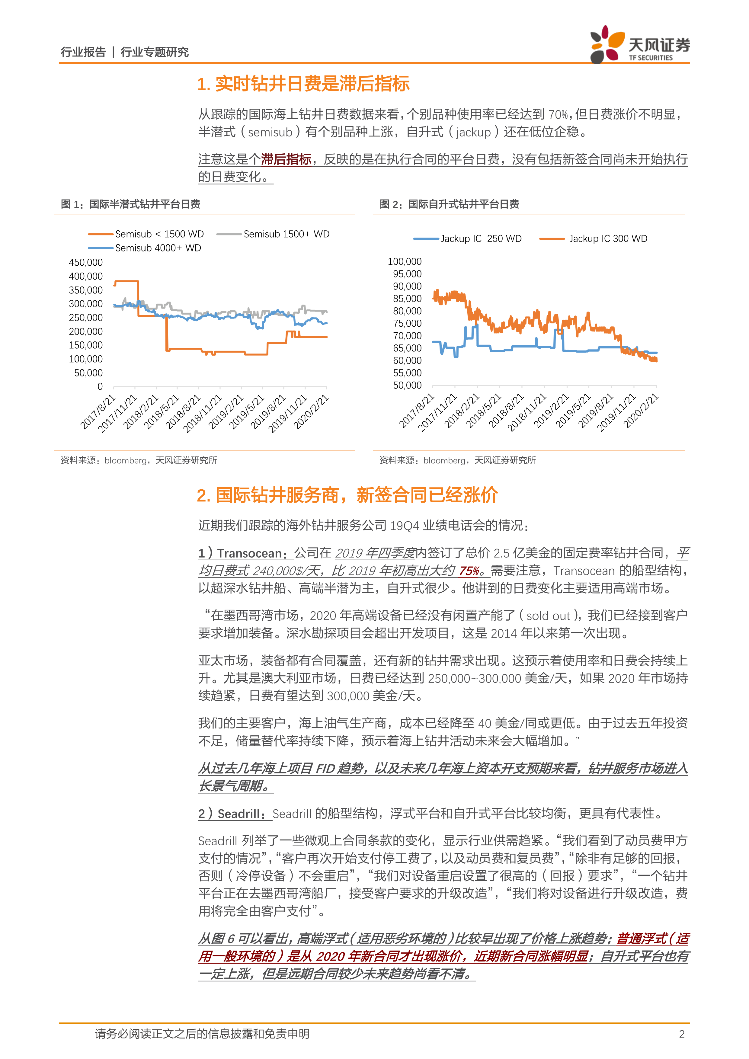 近期跟踪的海外钻井服务公司19Q4业绩电话会显示,新签合同已经出现涨价: