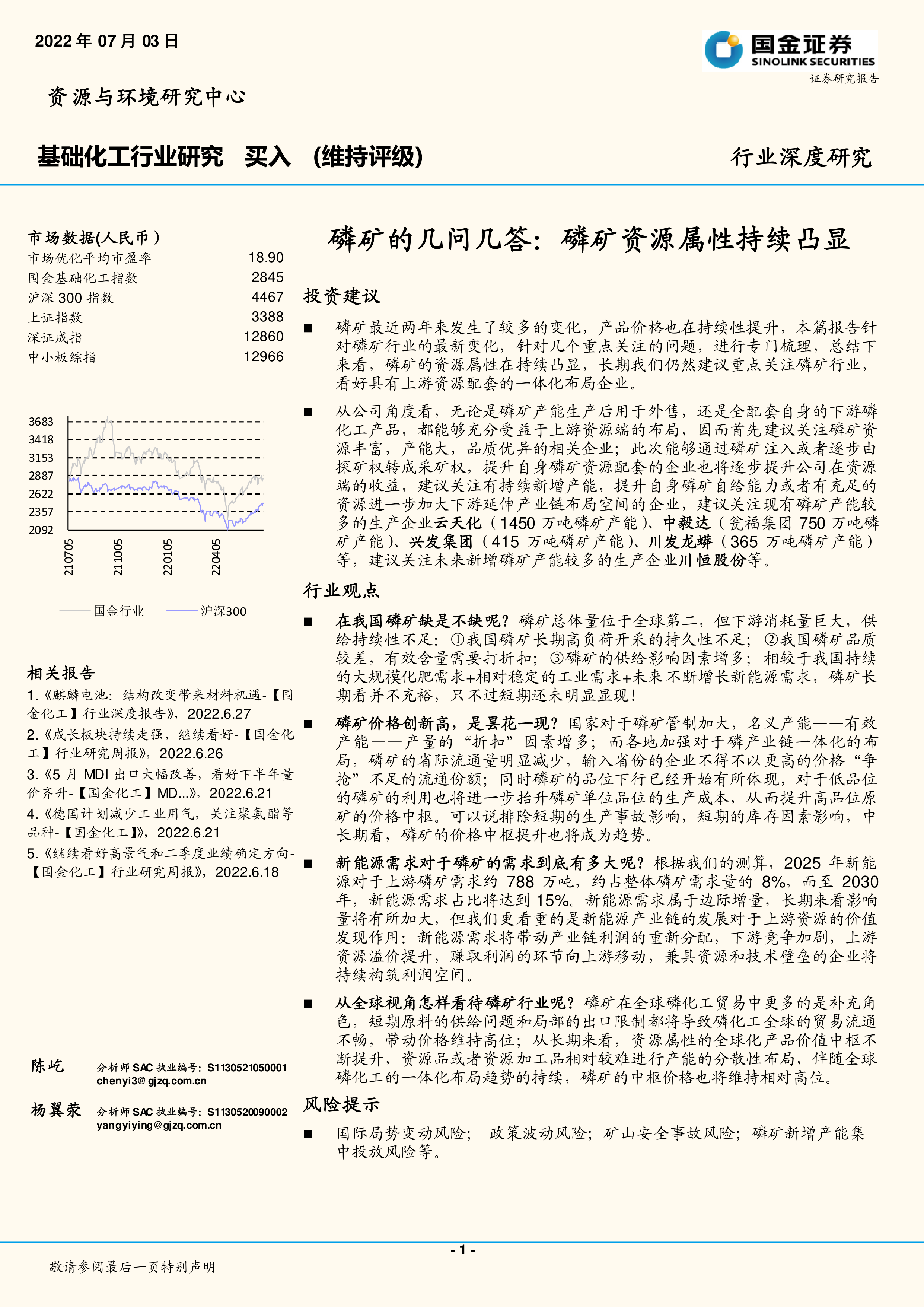 磷矿最近两年来发生了较多的变化,产品价格也在持续性提升,本篇报告针对磷矿行业的最新变化,针对几个重点关注的问题,进行专门梳理,总结下来看,磷矿的资源属性在持续凸显,长期我们仍然建议重点关注磷矿行业,看好具有上游资源配套的一体化布局企业。