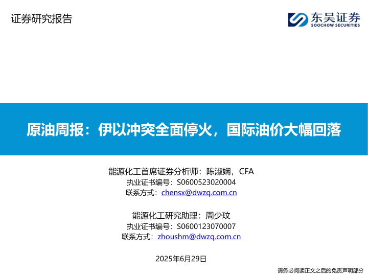 原油周报:伊以冲突全面停火,国际油价大幅回落