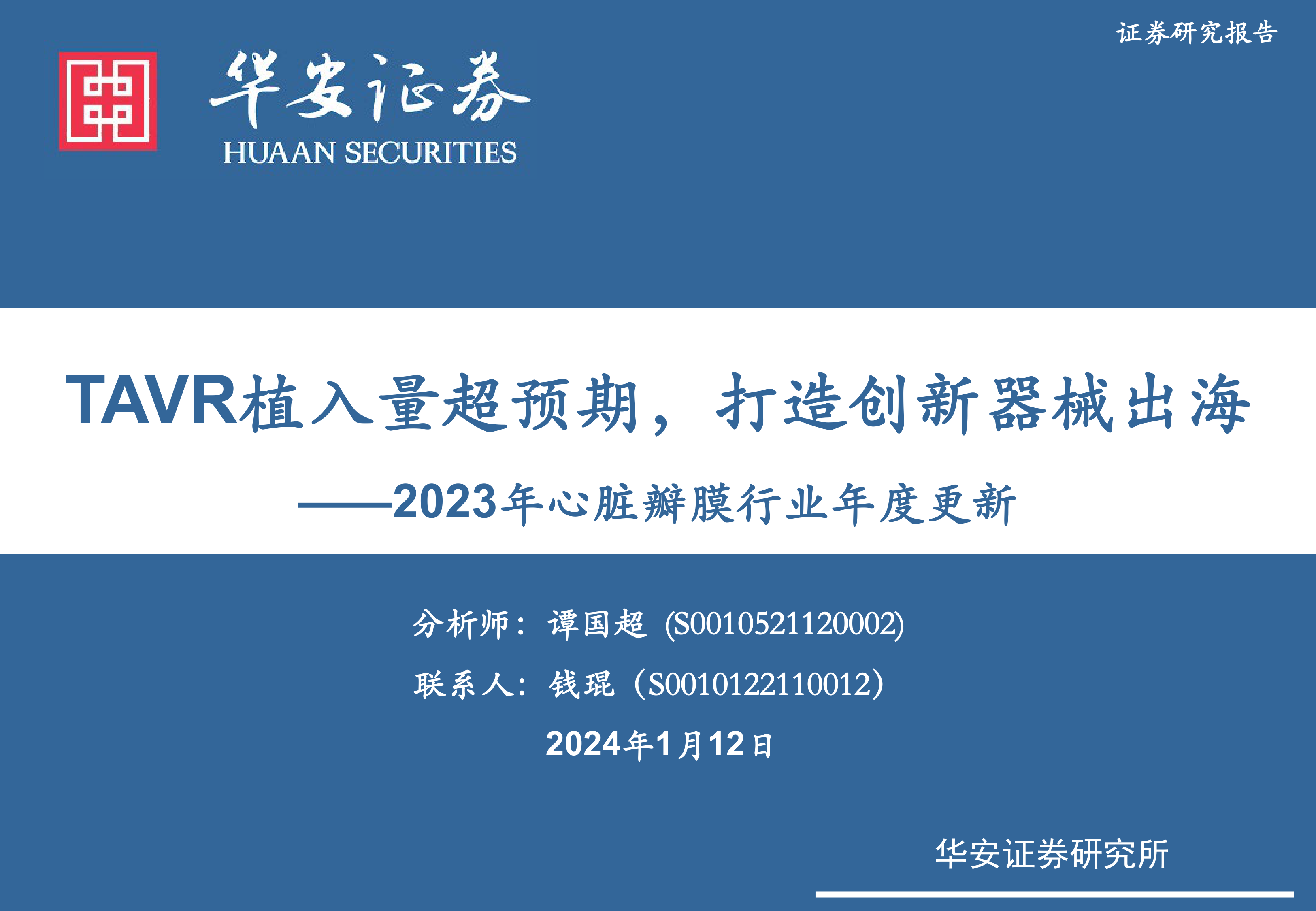 2023年心脏瓣膜行业年度更新:TAVR植入量超预期,打造创新器械出海