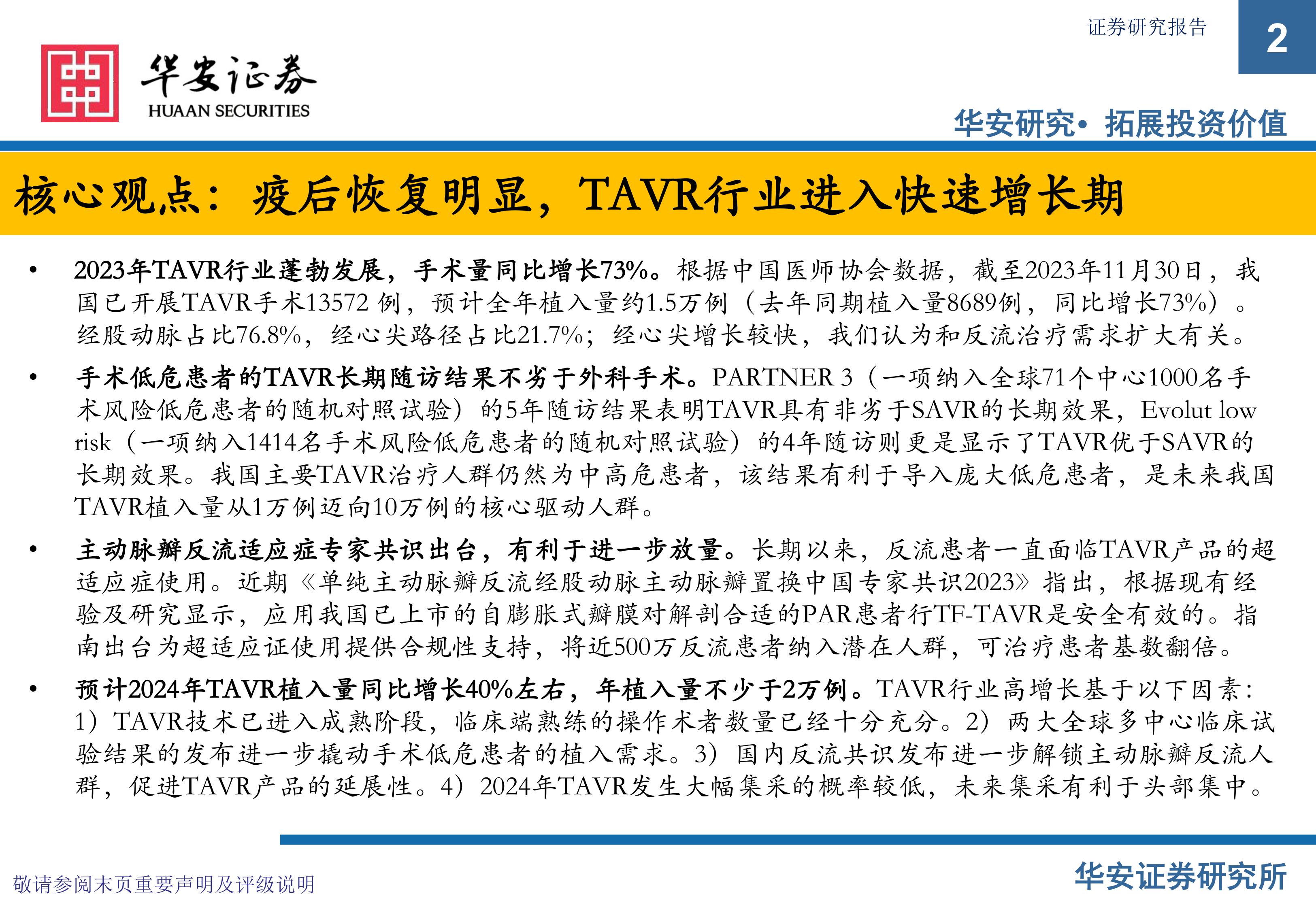 核心观点:疫后恢复明显,TAVR行业进入快速增长期