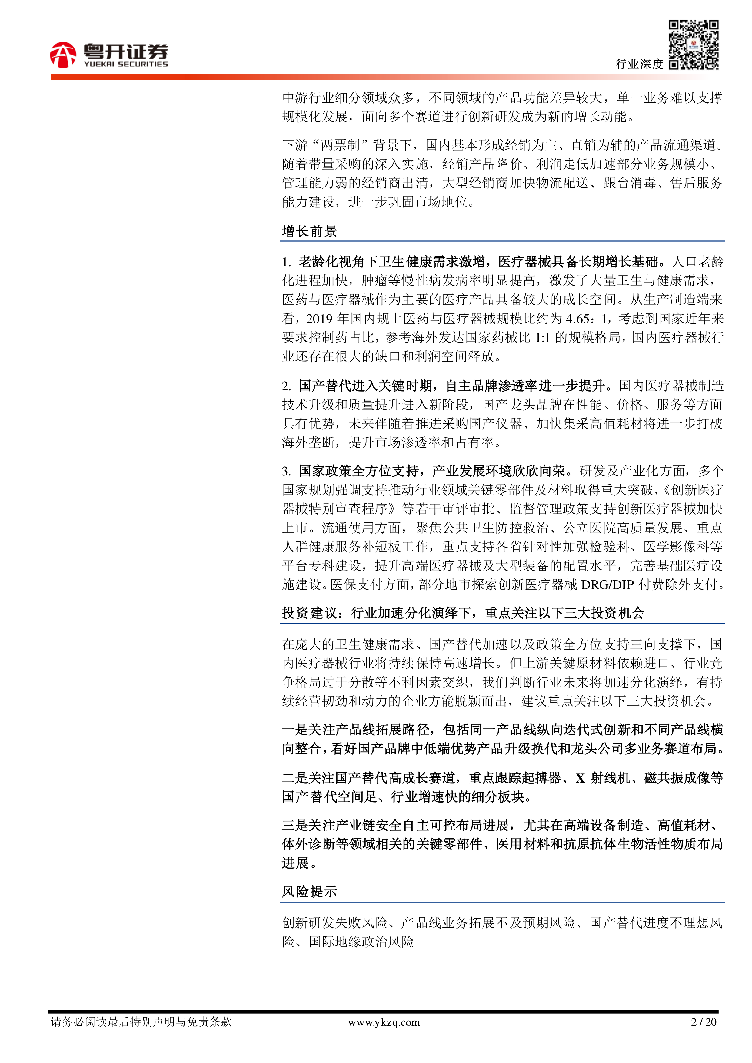 在庞大的卫生健康需求、国产替代加速以及政策全方位支持三向支撑下,国内医疗器械行业将持续保持高速增长。但上游关键原材料依赖进口、行业竞争格局过于分散等不利因素交织,我们判断行业未来将加速分化演绎,有持续经营韧劲和动力的企业方能脱颖而出,建议重点关注以下三大投资机会。