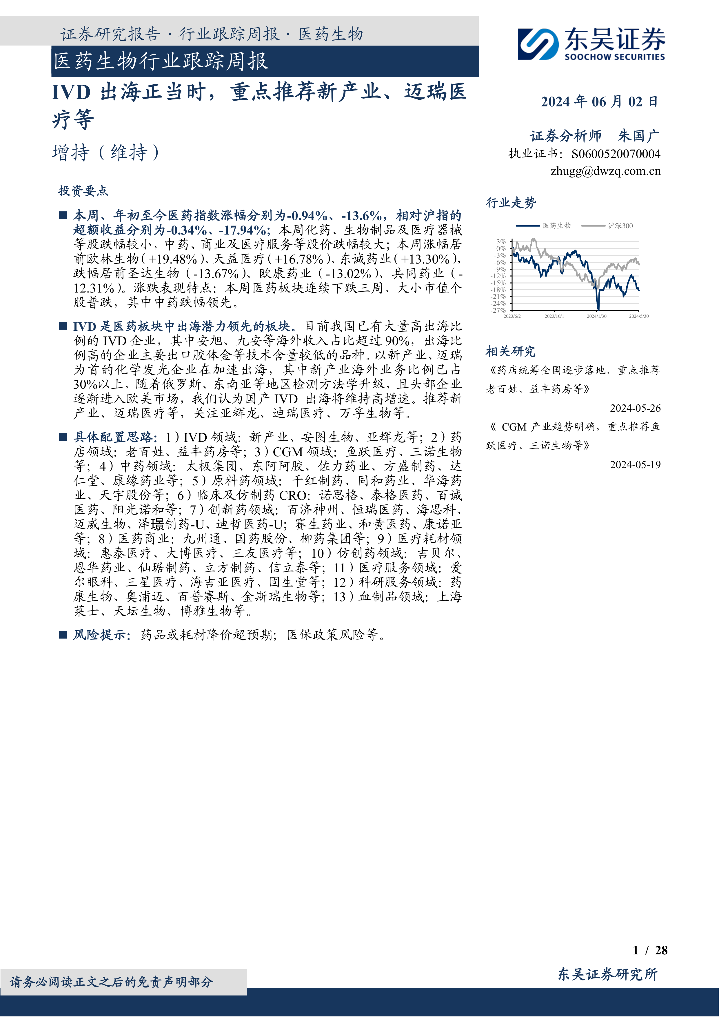 医药生物行业跟踪周报:IVD出海正当时,重点推荐新产业、迈瑞医疗等