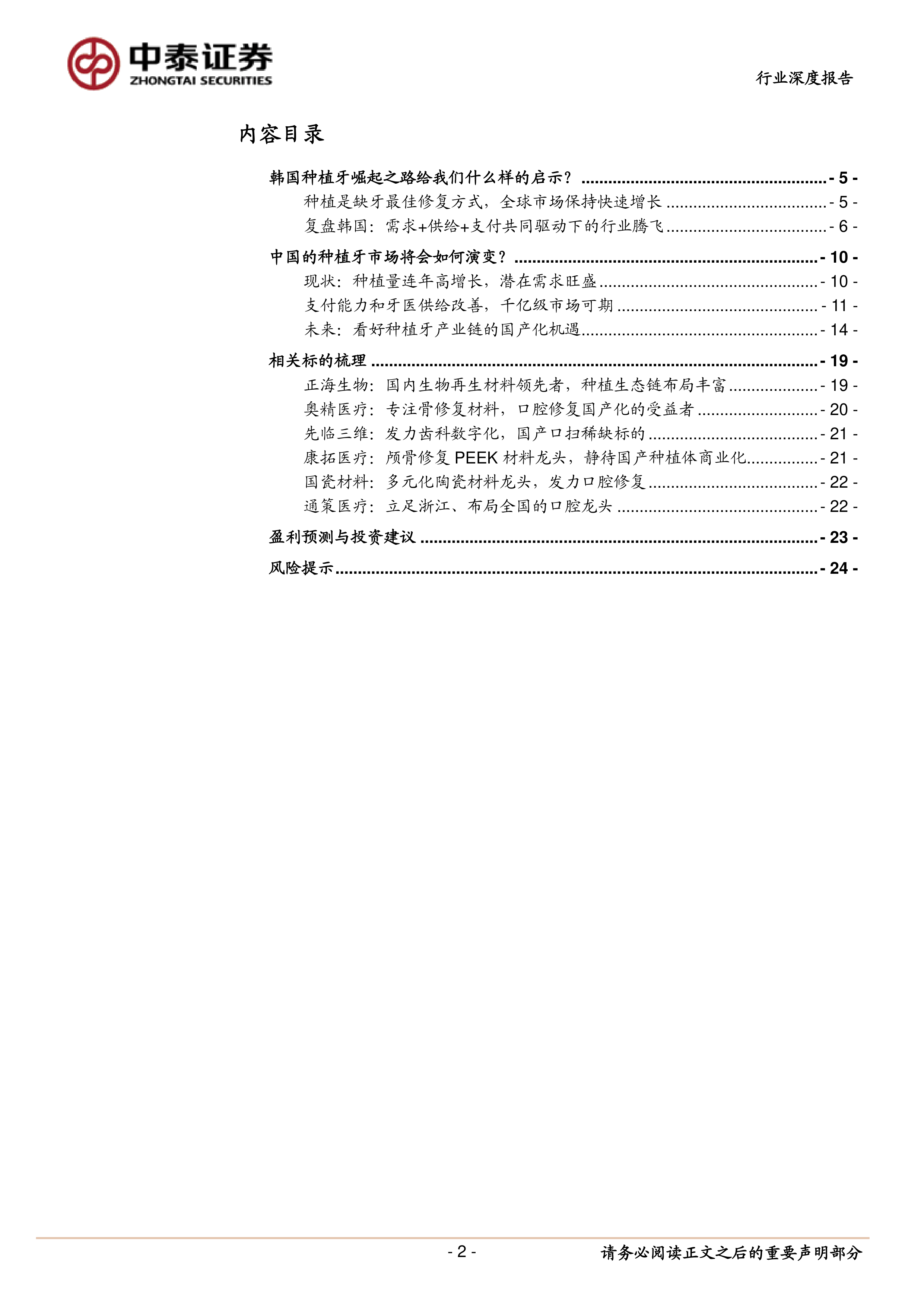 风险提示:种植体降价幅度超预期风险;市场推广不及预期风险;研发进度不及预期风险;市场规模测算基于一定前提、存在假设条件不达预期的风险等。