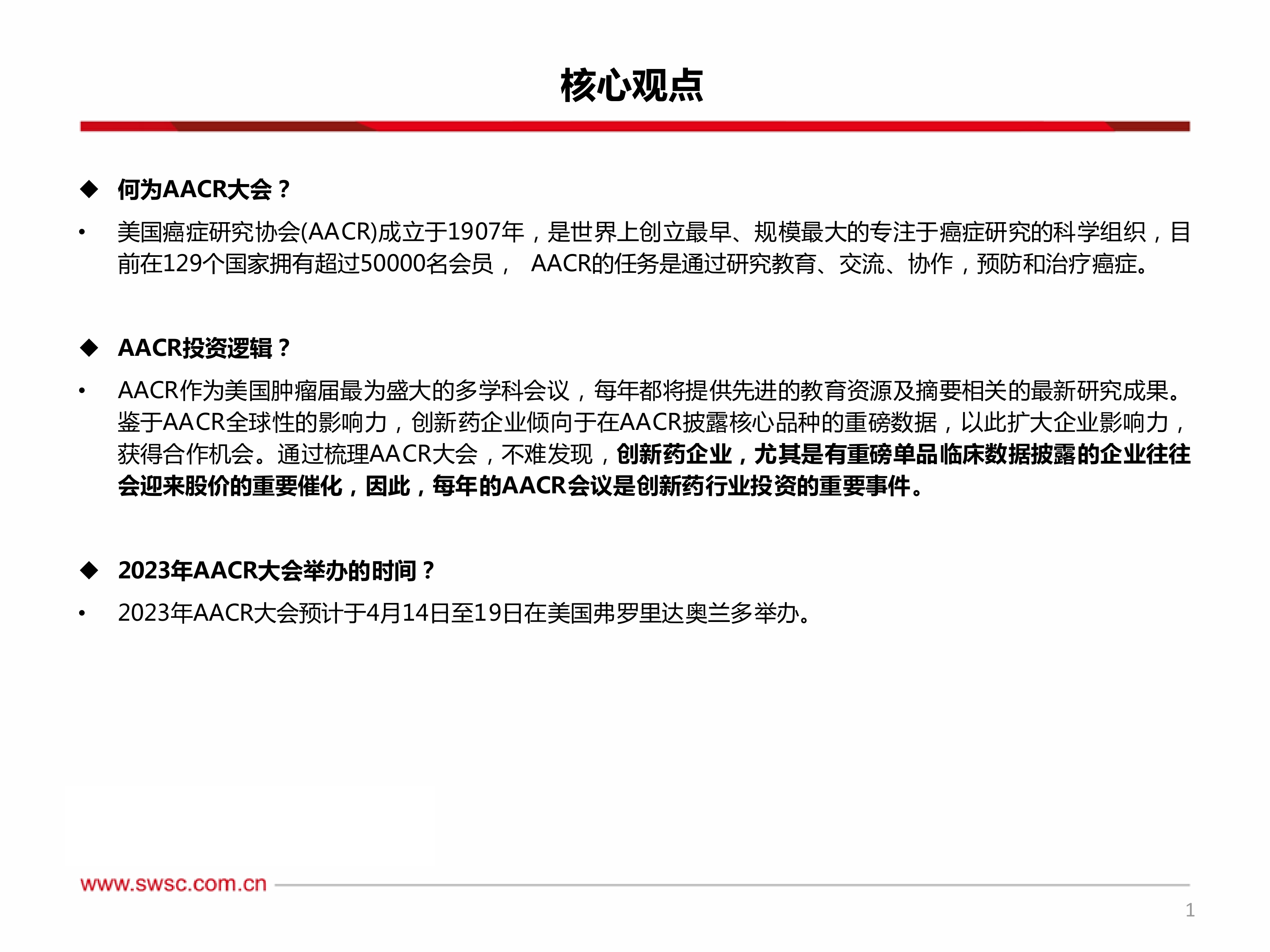 美国癌症研究协会(AACR)年会作为全球肿瘤研究领域的顶级盛会,不仅是学术交流的平台,更是创新药企业展示重磅临床数据、扩大影响力及寻求合作的关键契机。鉴于其全球性的影响力,每年AACR会议上披露的创新药数据往往能成为相关企业股价的重要催化剂,因此,该会议被视为创新药行业投资的重要事件。