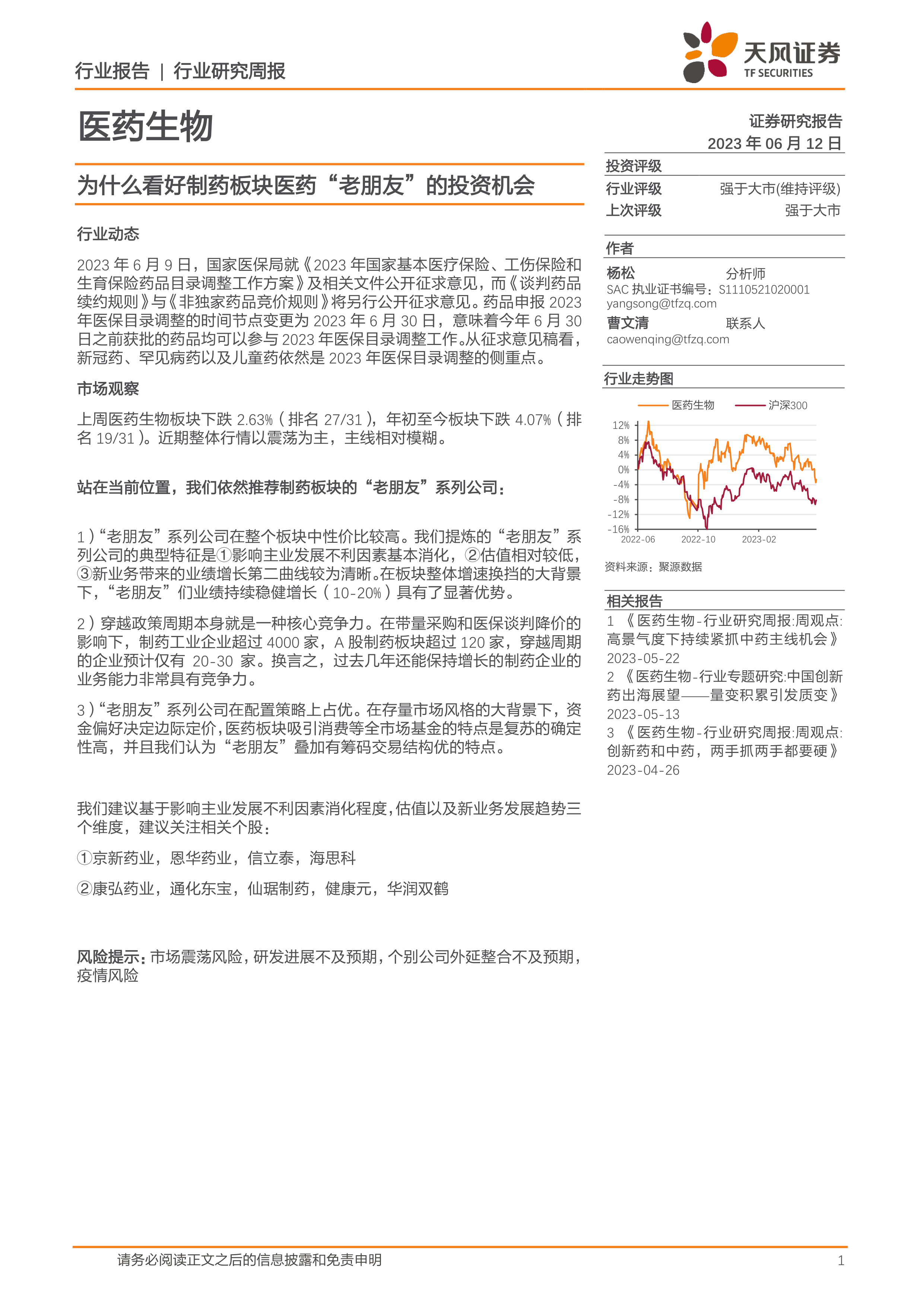 医药生物行业研究周报:为什么看好制药板块医药“老朋友”的投资机会