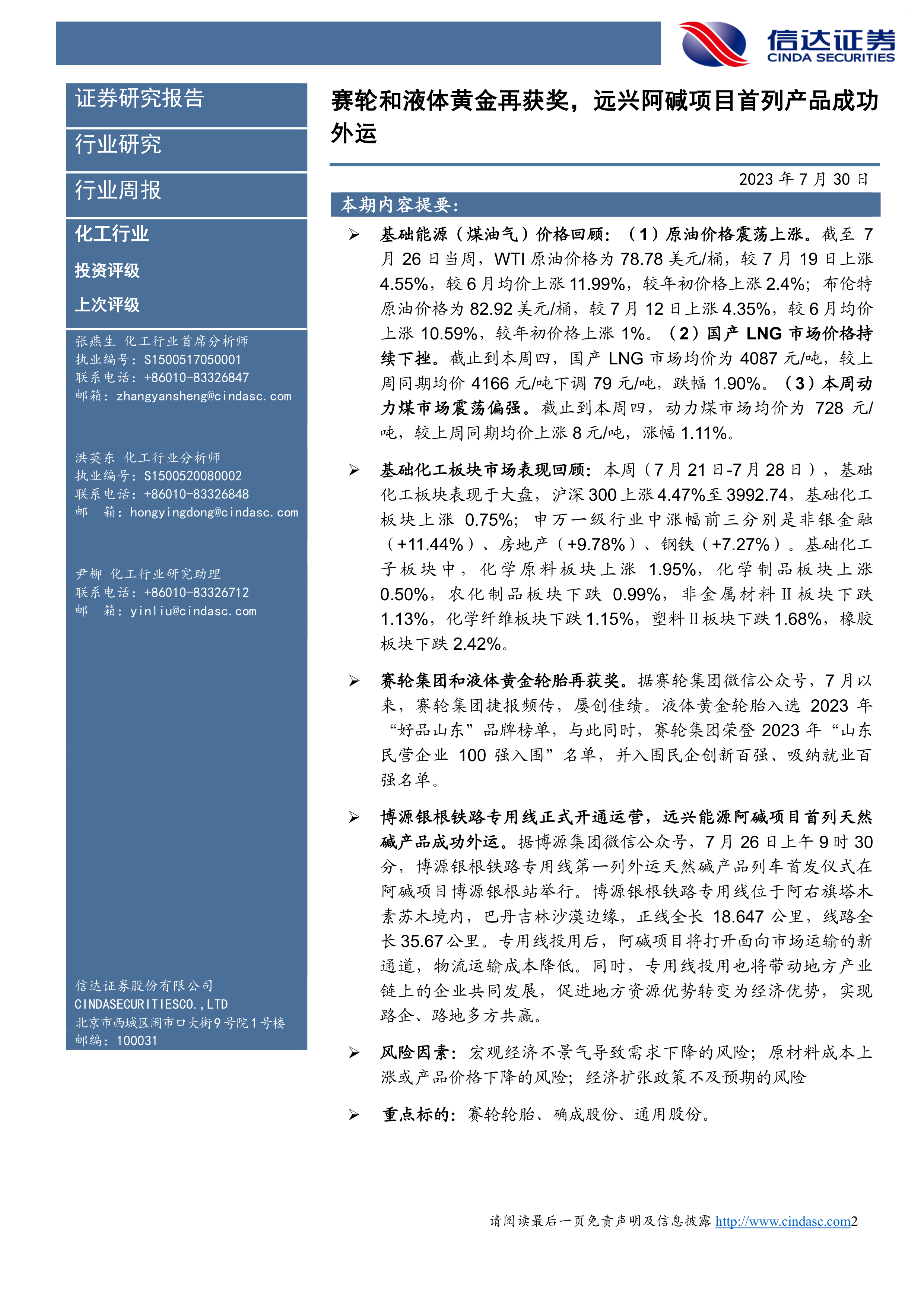 化工行业周报:赛轮和液体黄金再获奖,远兴阿碱项目首列产品成功外运