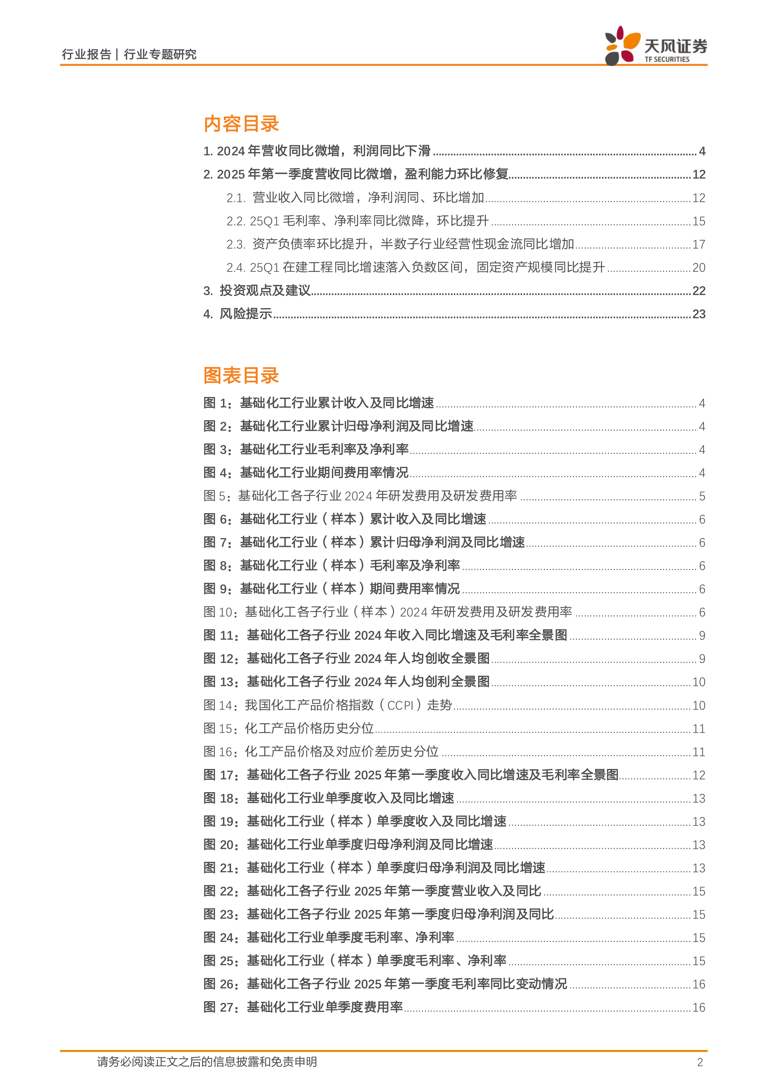 基础化工行业专题研究:24年营收微增利润承压、25Q1盈利能力环比修复