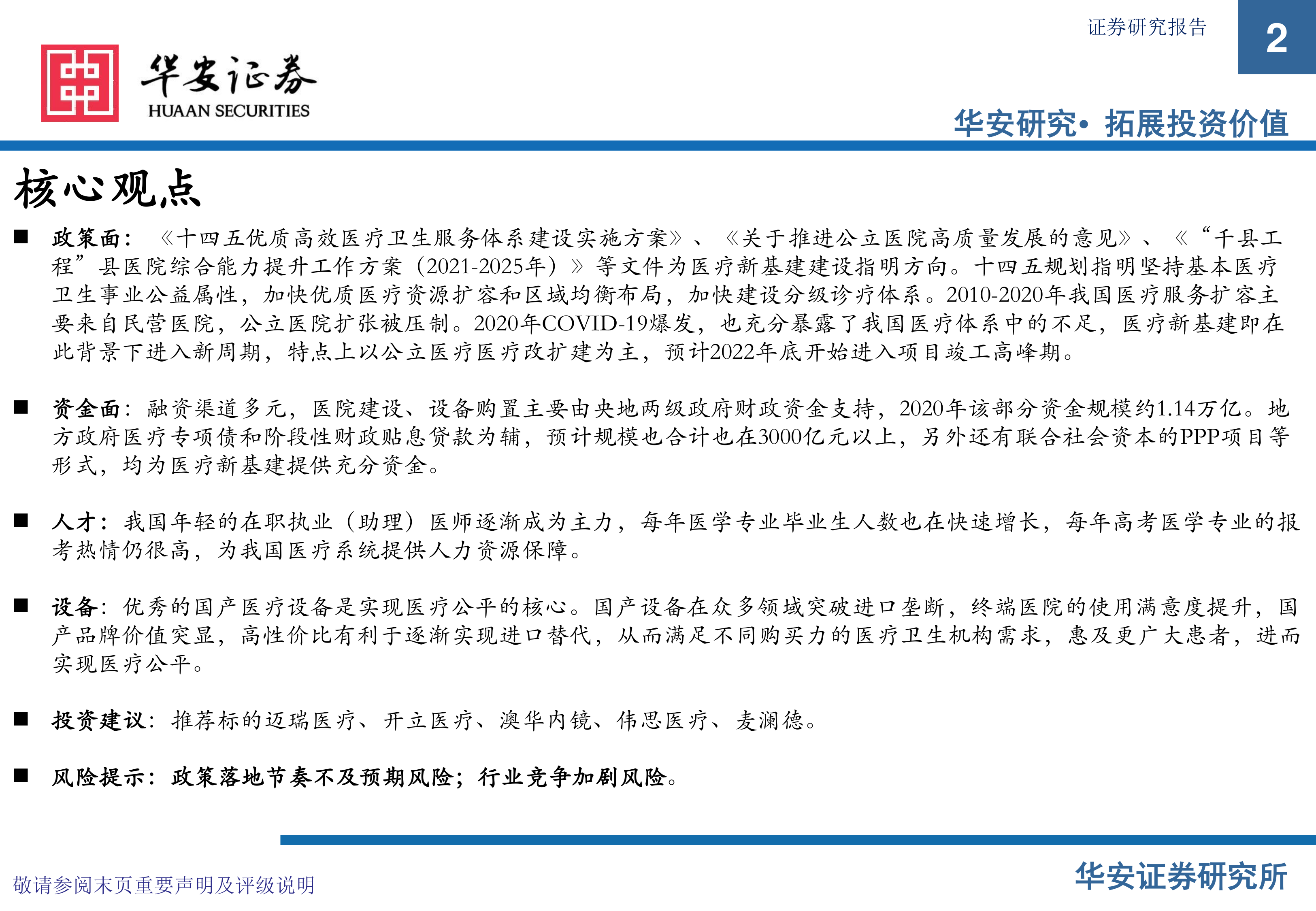 医疗器械行业专题:医疗新基建,加快优质医疗资源扩容和区域均衡布局