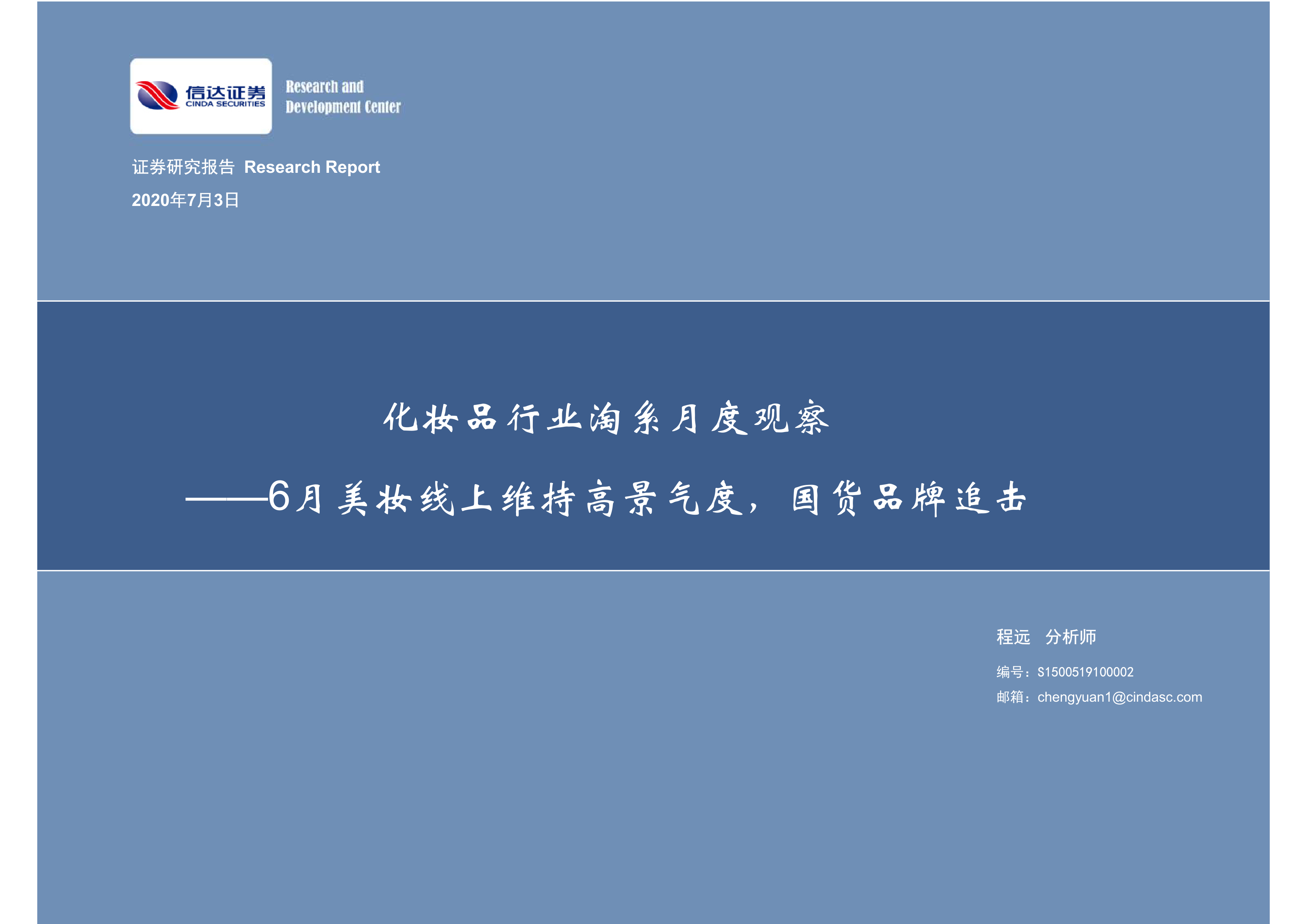 化妆品行业淘系月度观察:6月美妆线上维持高景气度,国货品牌追击