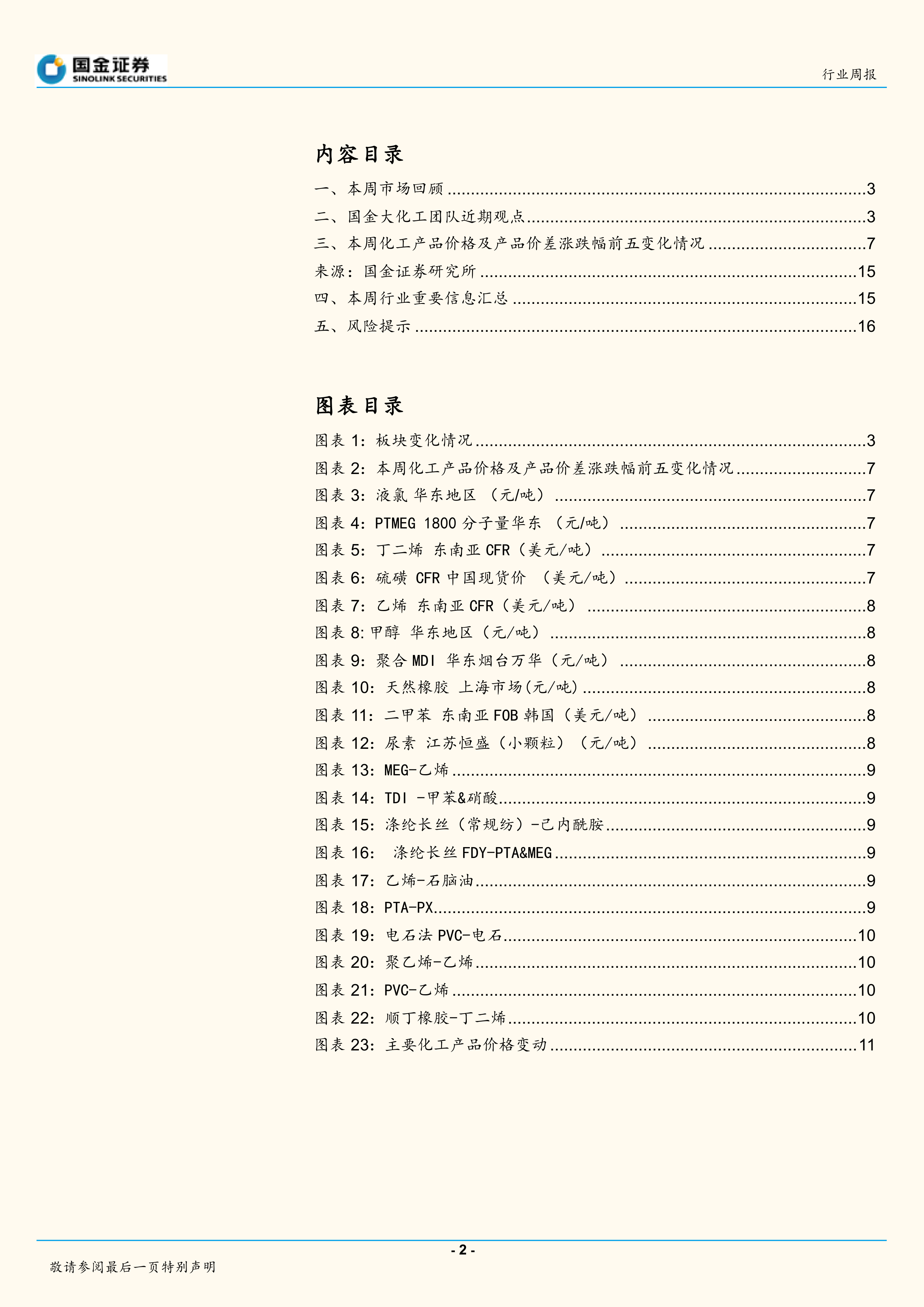 本周化工产品价格涨幅前五位为:液氯(35.40%)、PTMEG(25.00%)、丁二烯(18.42%)、硫磺(18.36%)、乙烯(15.38%)。 价格跌幅前五位为:甲醇(-20.49%)、聚合MDI(-7.57%)、天然橡胶(-7.37%)、二甲苯(-6.53%)、尿素(-5.83%)。
