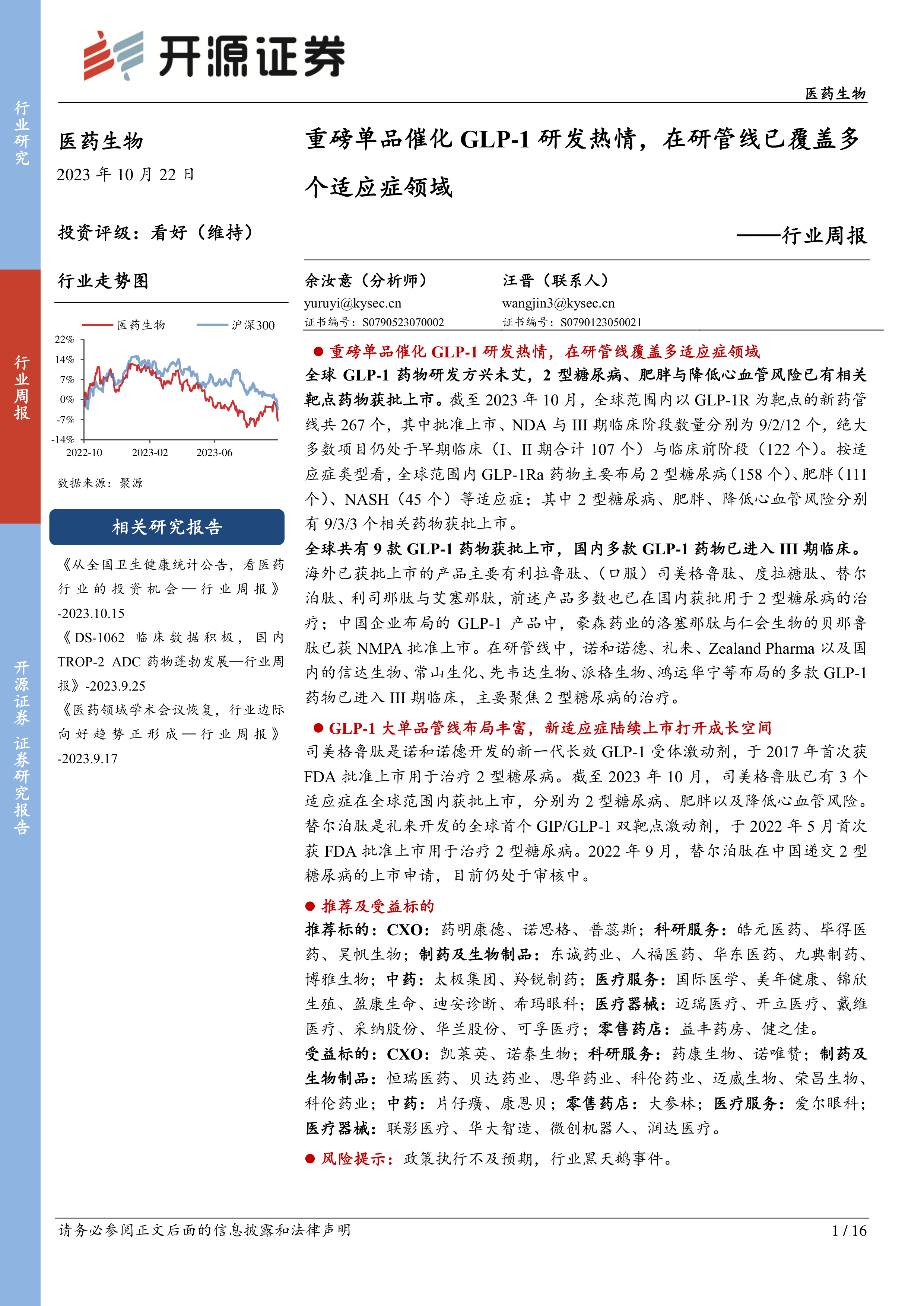 医药生物行业周报:重磅单品催化GLP-1研发热情,在研管线已覆盖多个适应症领域