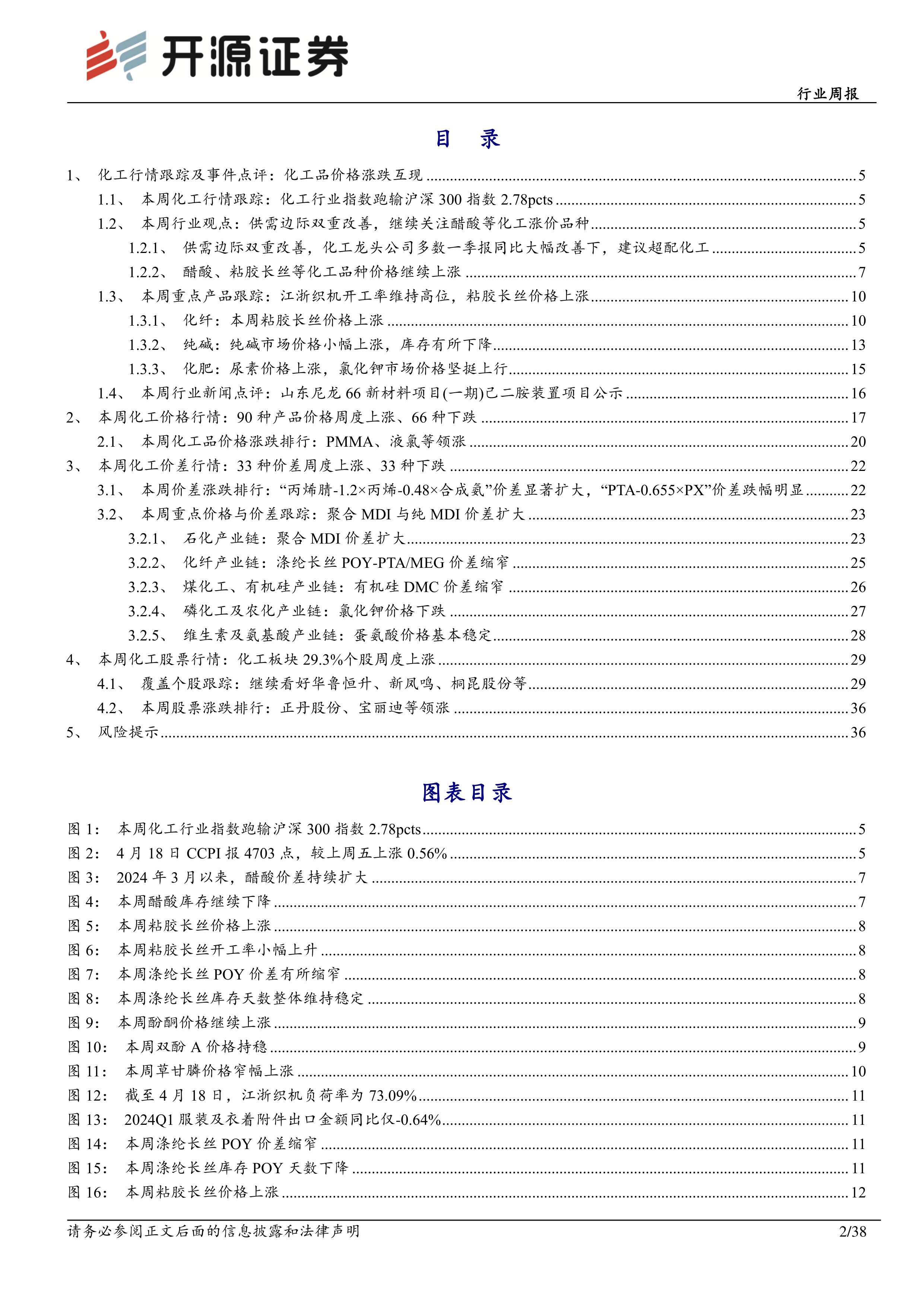 本周重要公告显示,远兴能源、江苏索普等公司发布了2023年年报,安利股份、万华化学等发布了2024年一季度业绩预告或报告,多数显示业绩改善或扭亏为盈。例如,万华化学2024年一季度归母净利润同比上升2.57%至41.57亿元。中盐化工拟投资建设锅炉烟气二氧化碳捕集及固废综合再利用项目,以降低生产成本并实现节能降碳。