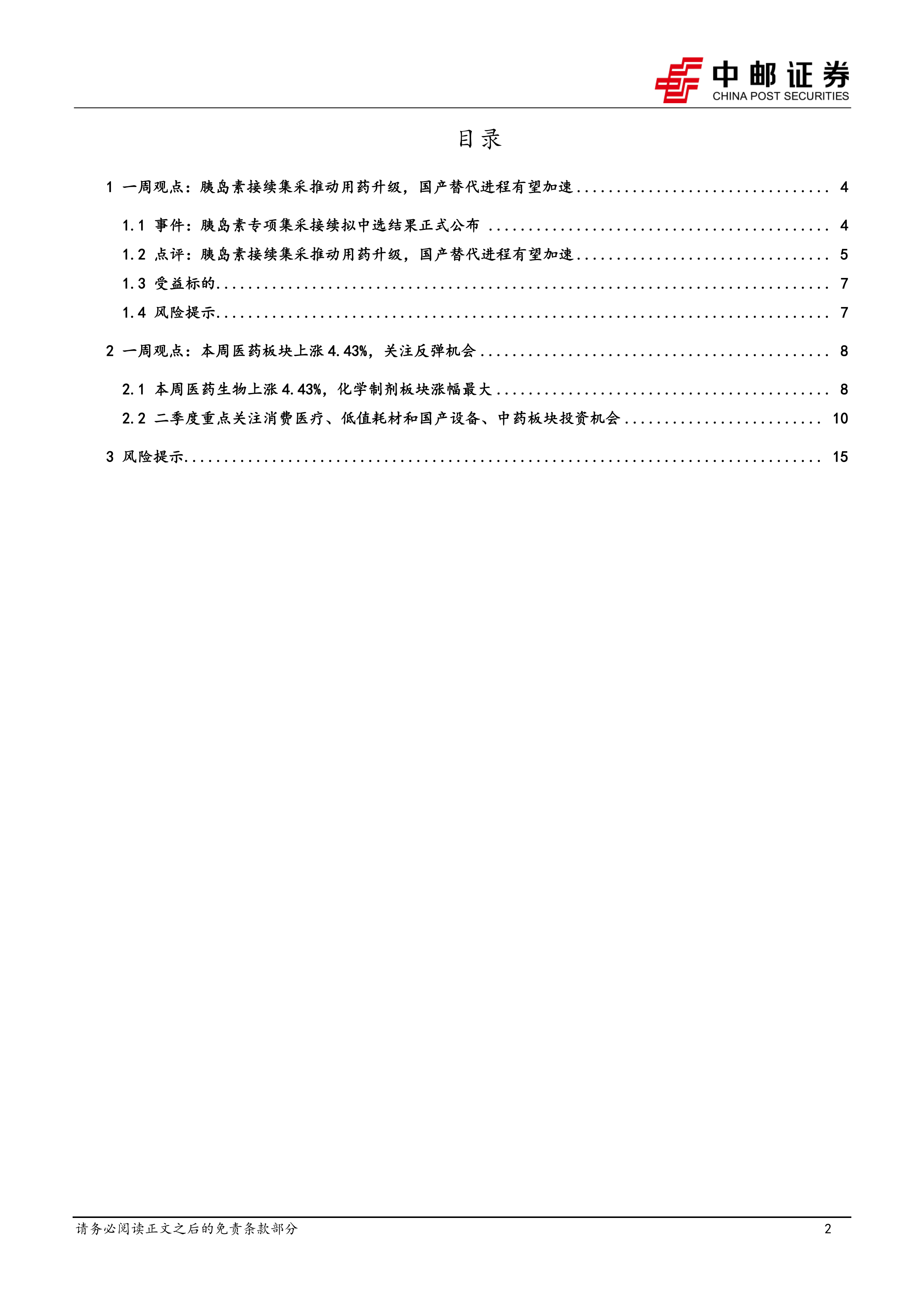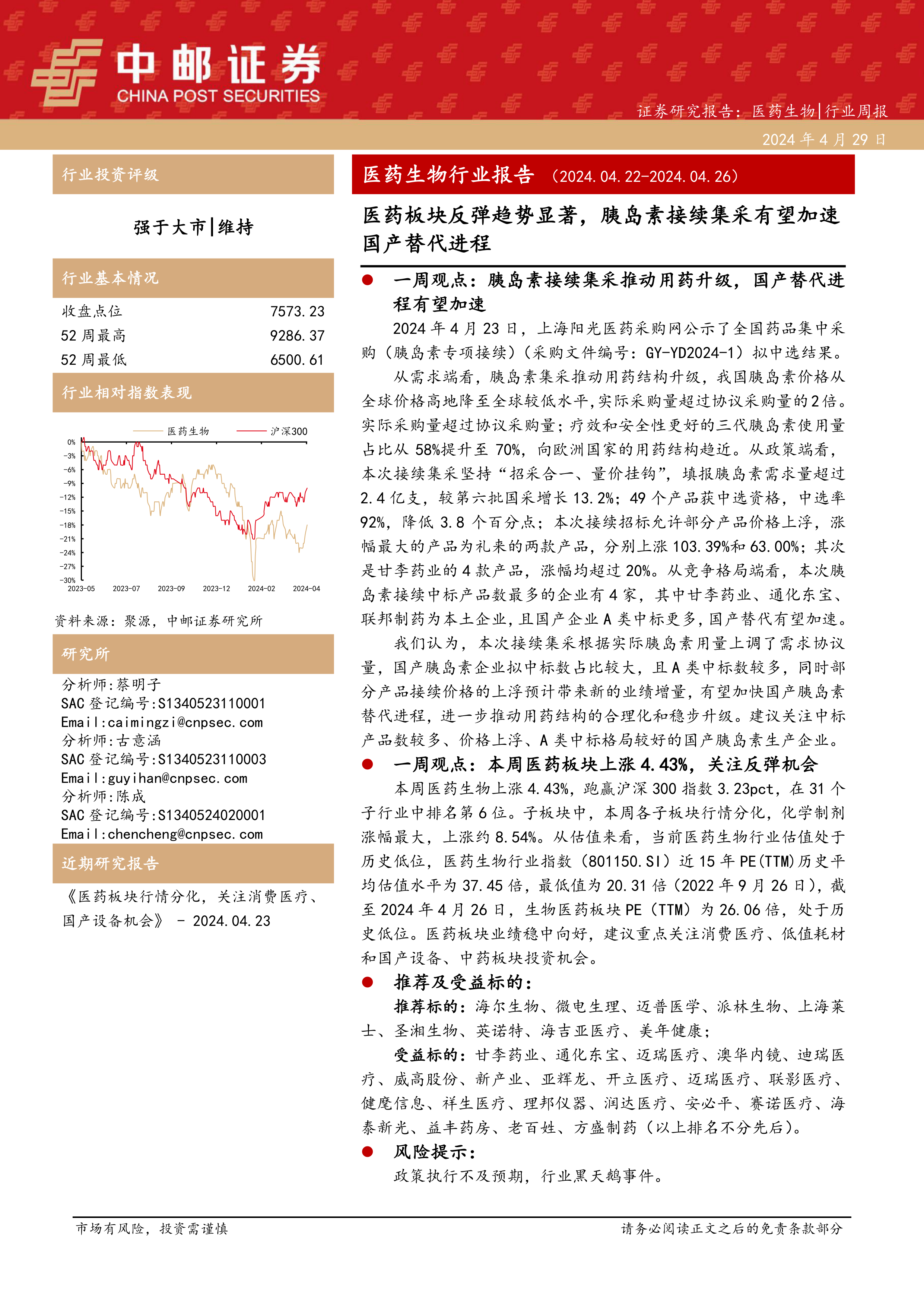 医药生物行业周报:医药生物行业报告医药板块反弹趋势显著,胰岛素接续集采有望加速国产替代进程
