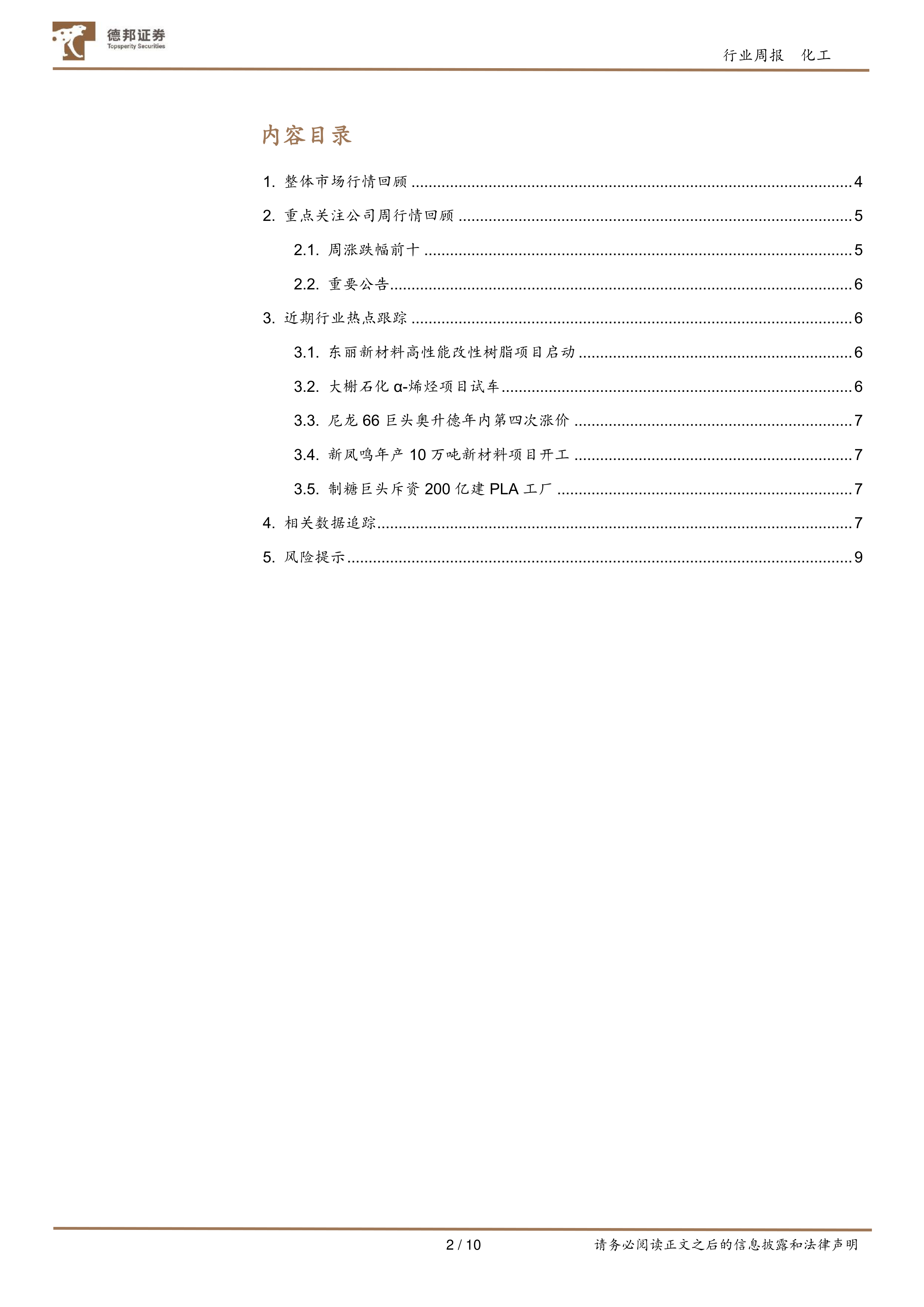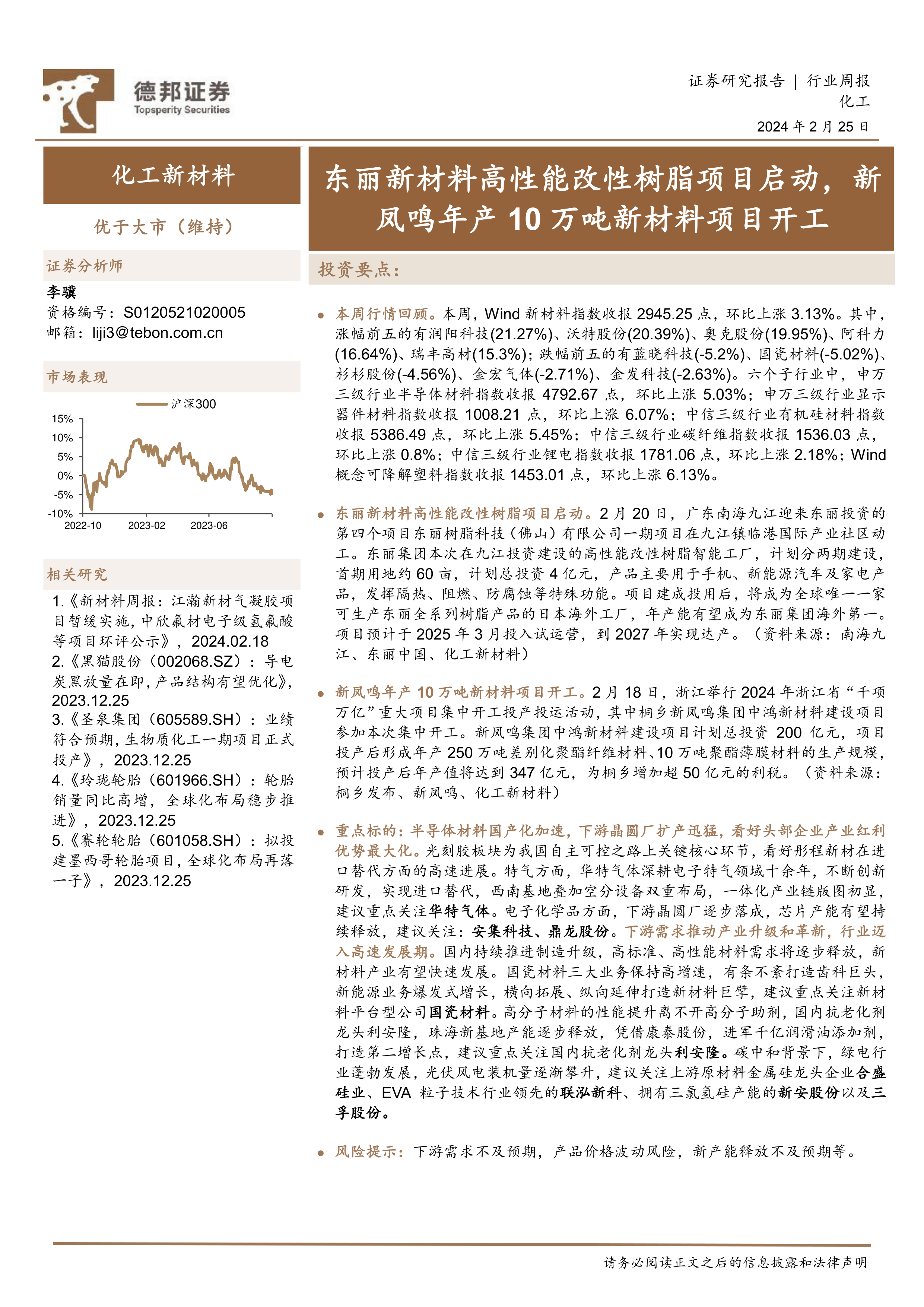 化工新材料行业周报:东丽新材料高性能改性树脂项目启动,新凤鸣年产10万吨新材料项目开工