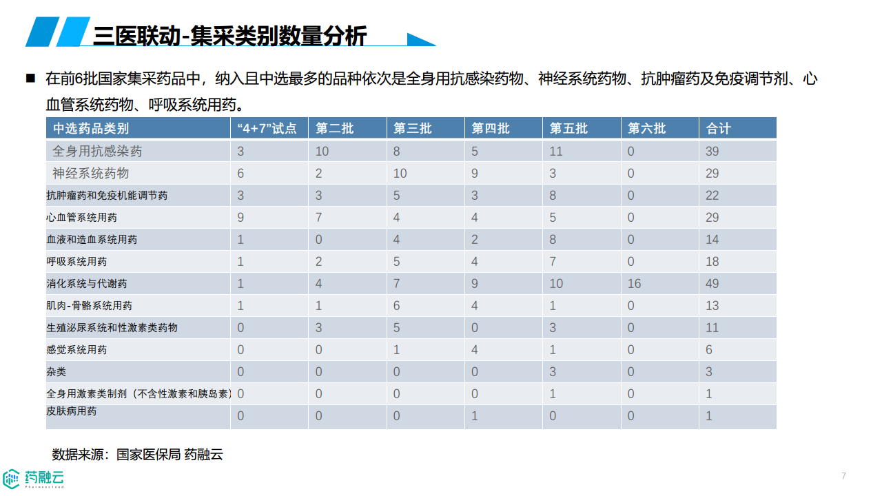 集采导致了药品品种的替换。数据显示,在集采药品中,全身用抗感染药物、神经系统药物、抗肿瘤药及免疫调节剂等类别中选数量最多。然而,集采也促使药企寻求差异化竞争策略,例如开发创新药物、布局差异化产品,以应对价格战带来的压力。 部分企业通过持续上新,推出更具竞争力的产品来保持市场份额。