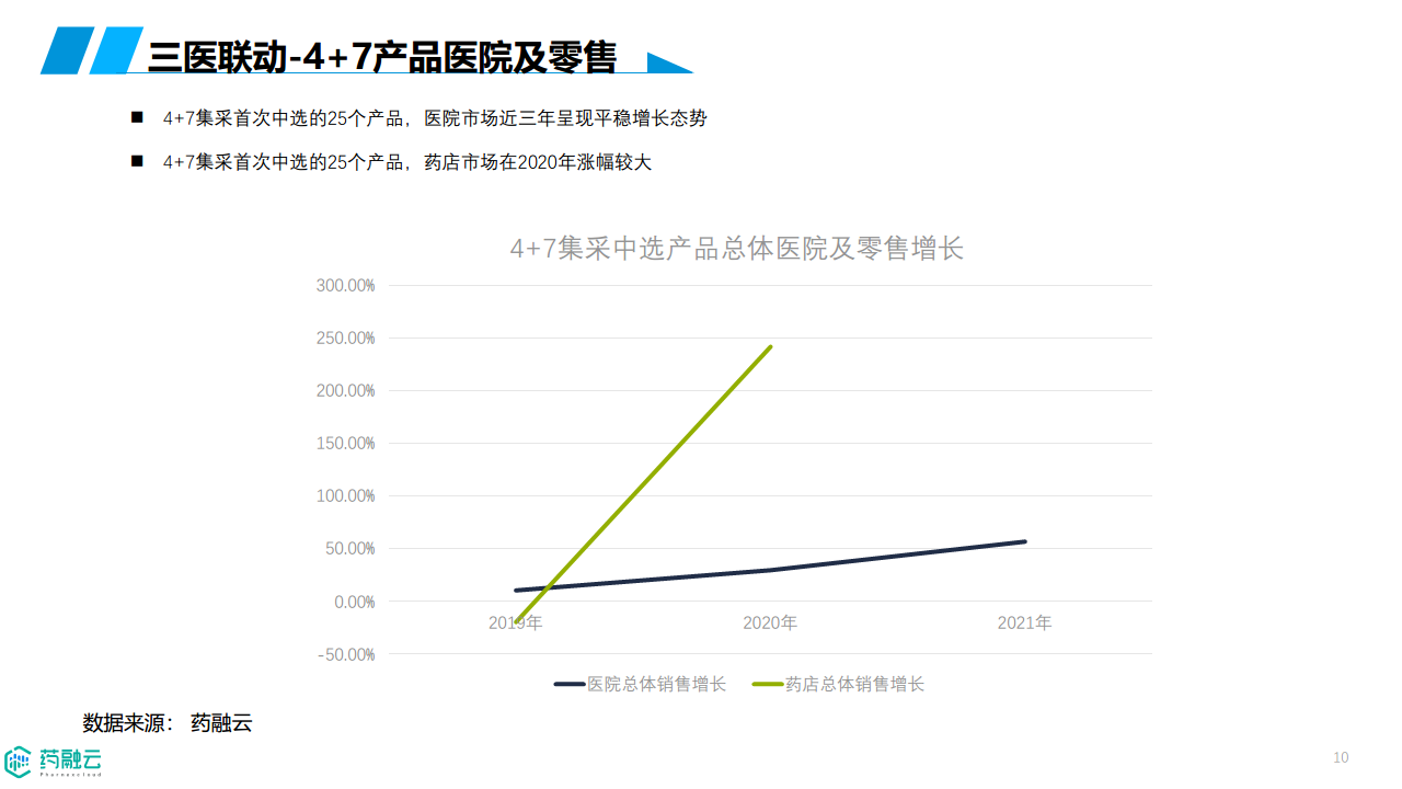 分级诊疗、互联网医疗政策的完善推动了医药销售渠道的多元化。药企需要适应院内、院外市场不同的竞争格局,并积极拥抱数字化营销。在院内市场,持续上新和布局差异化产品至关重要;在院外市场,则需要加强与大连锁药店、电商平台的合作,并开展精准的数字化营销,例如通过京东大药房等平台进行单病种关爱、慢性病管理等服务,提升患者依从性和品牌忠诚度。 数据显示,4+7集采中选产品在医院市场呈现平稳增长,而在药店市场则在2020年出现较大涨幅,这反映了渠道多元化的重要性。