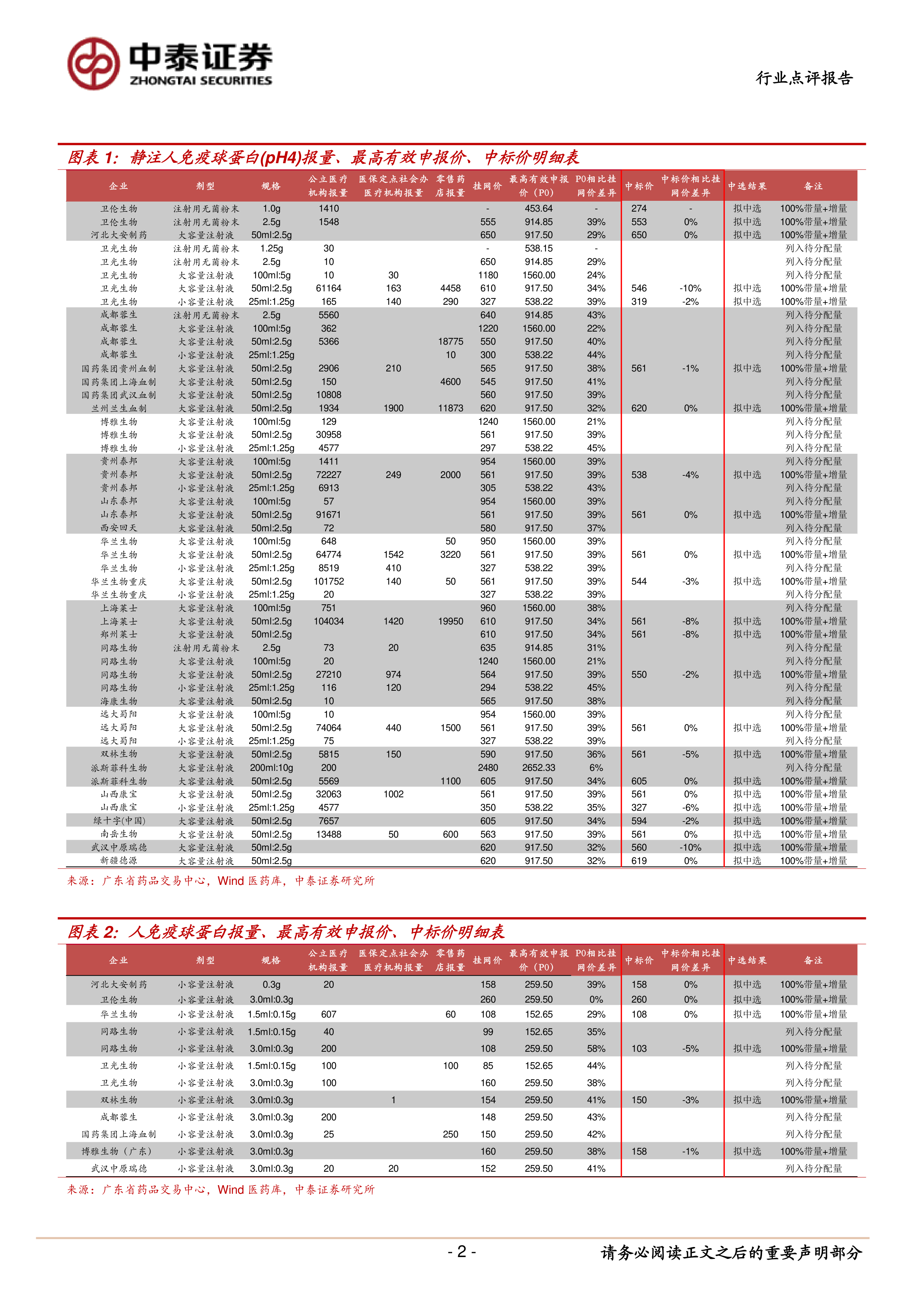 人免疫球蛋白:降价幅度0-5%,有10家企业参选,6家企业中选,对应带量827支,其余报量485支可供分配。其中天坛生物弃标;华兰生物未参选;博雅生物未参选;派林生物旗下双林生物中标价150元(-3%)。