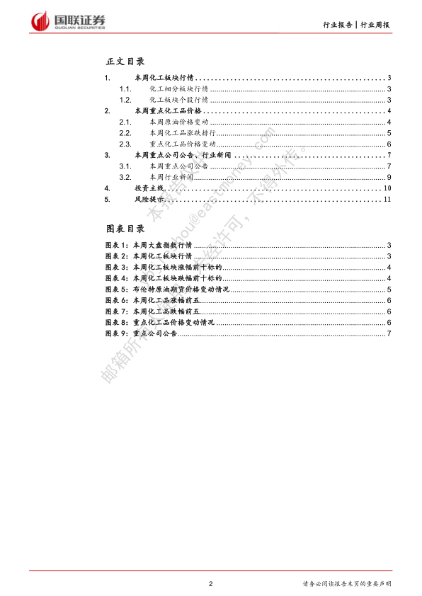 本周化工个股表现