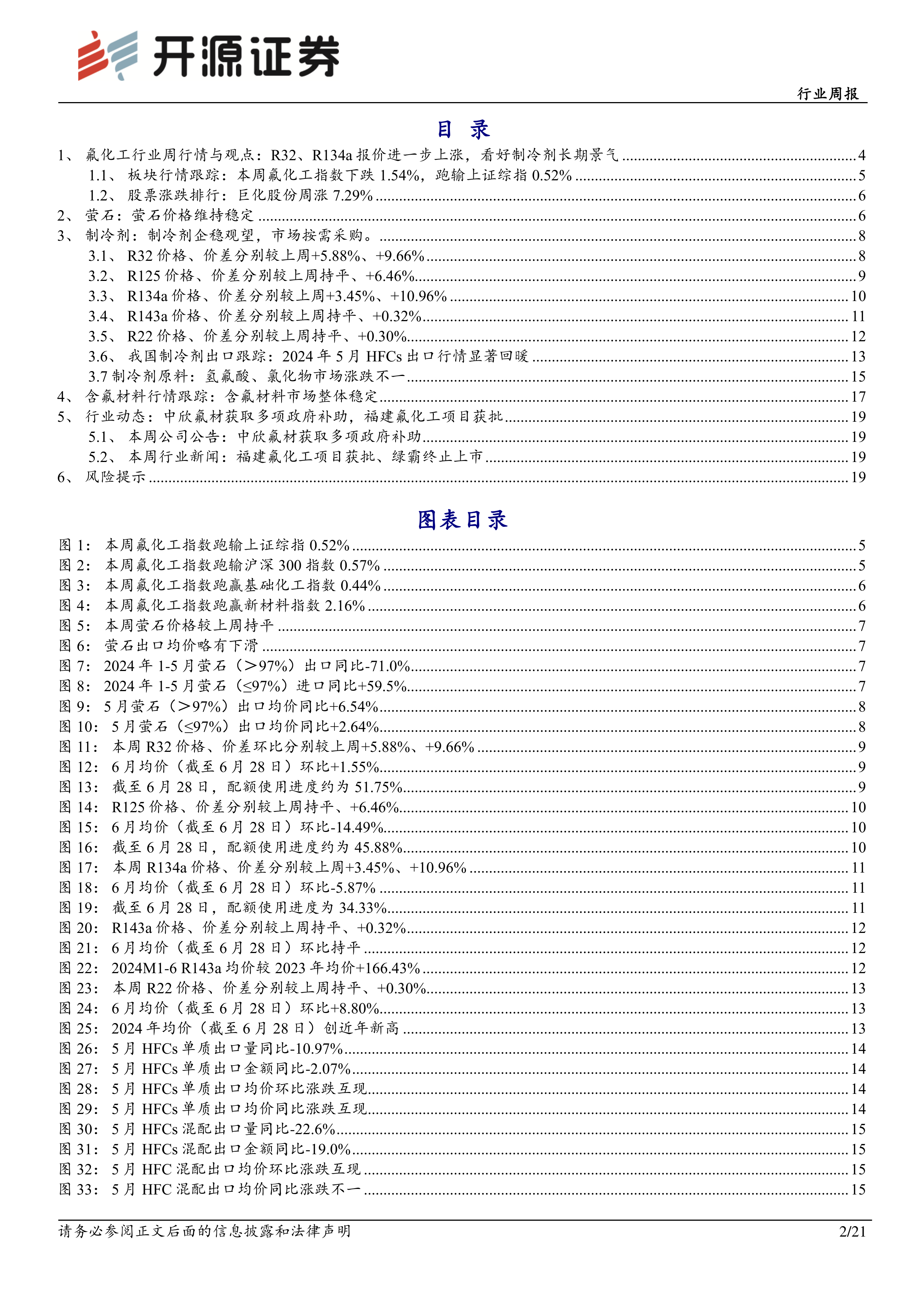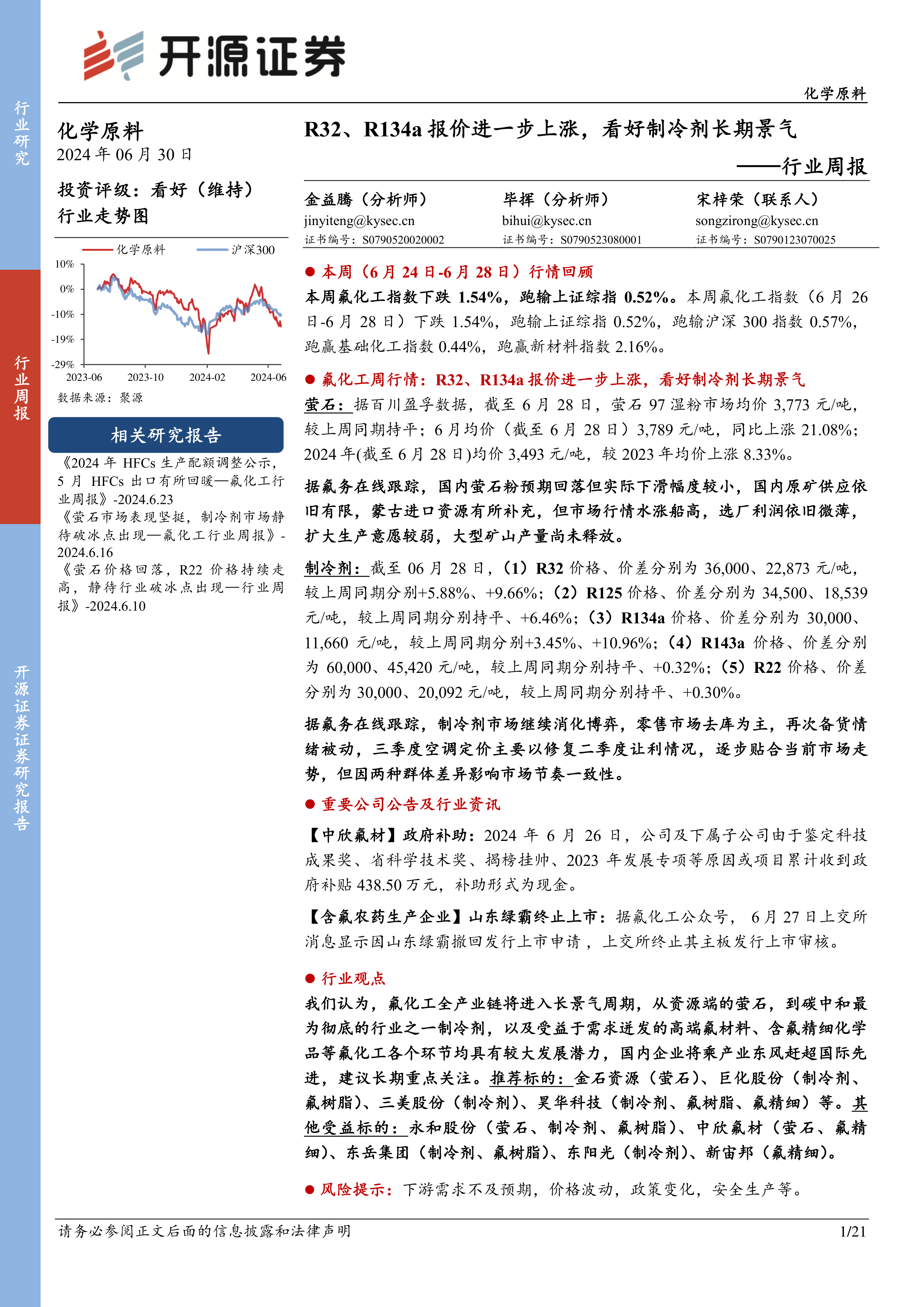 化学原料行业周报:R32、R134a报价进一步上涨,看好制冷剂长期景气