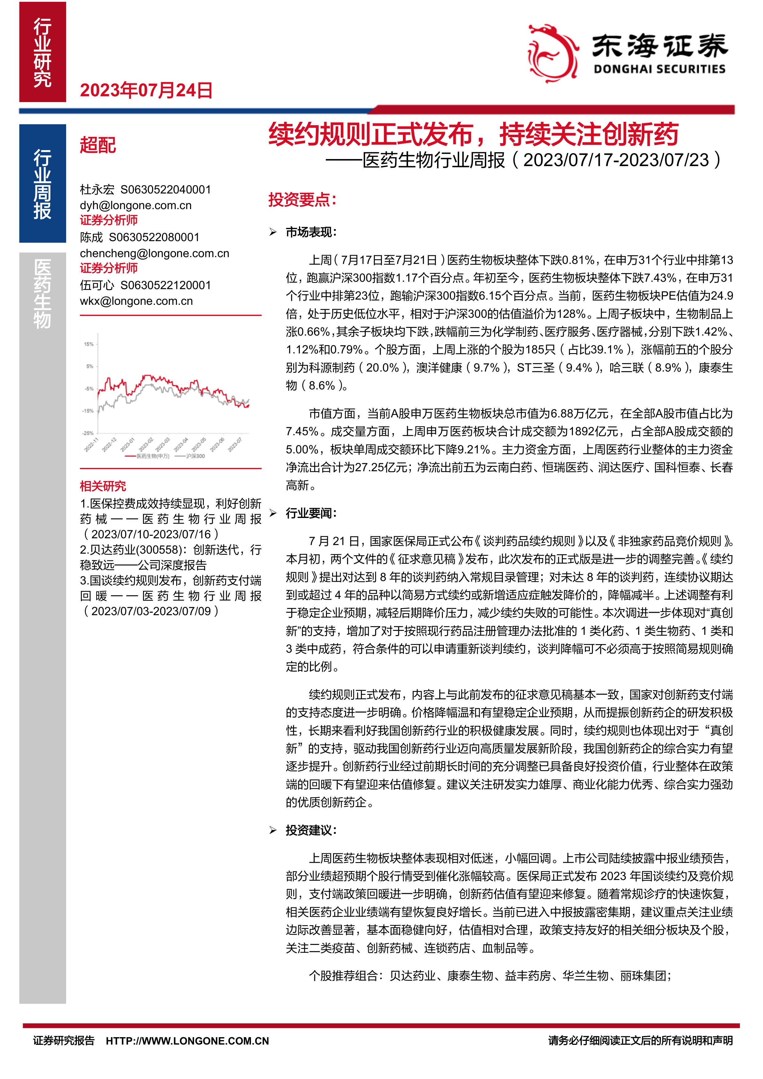 医药生物行业周报:续约规则正式发布,持续关注创新药