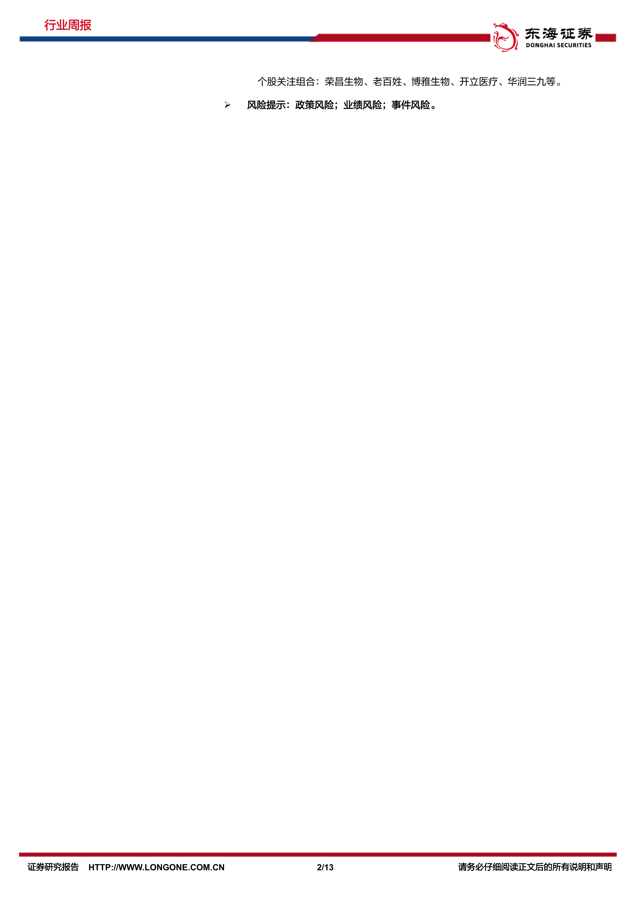 个股推荐组合:贝达药业、康泰生物、益丰药房、华兰生物、丽珠集团;