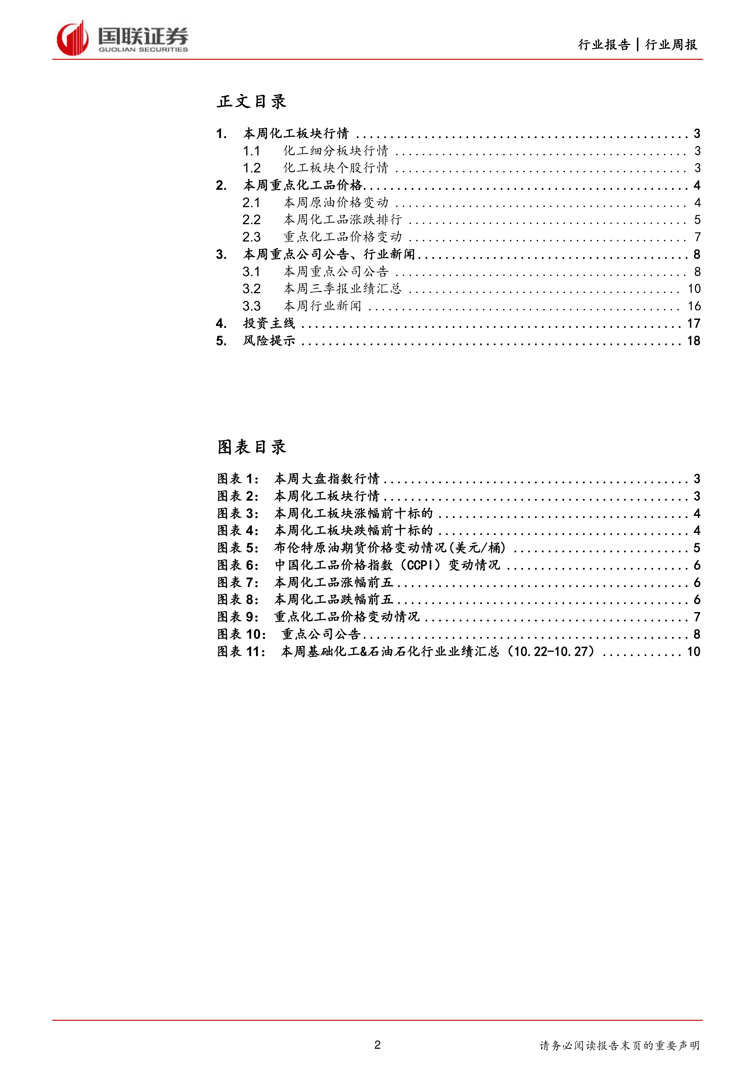 本周市场综合指数整体上涨,上证综指报收3017.78,本周上涨1.16%,深证成指本周上涨2.09%,创业板指上涨1.74%,化工板块上涨了2.52%。本周化工各细分板块大部分上涨,磷化工和精细化工板块涨幅居前,板块指数分别上涨了4.46%和2.79%;能源板块下跌了1.09%。